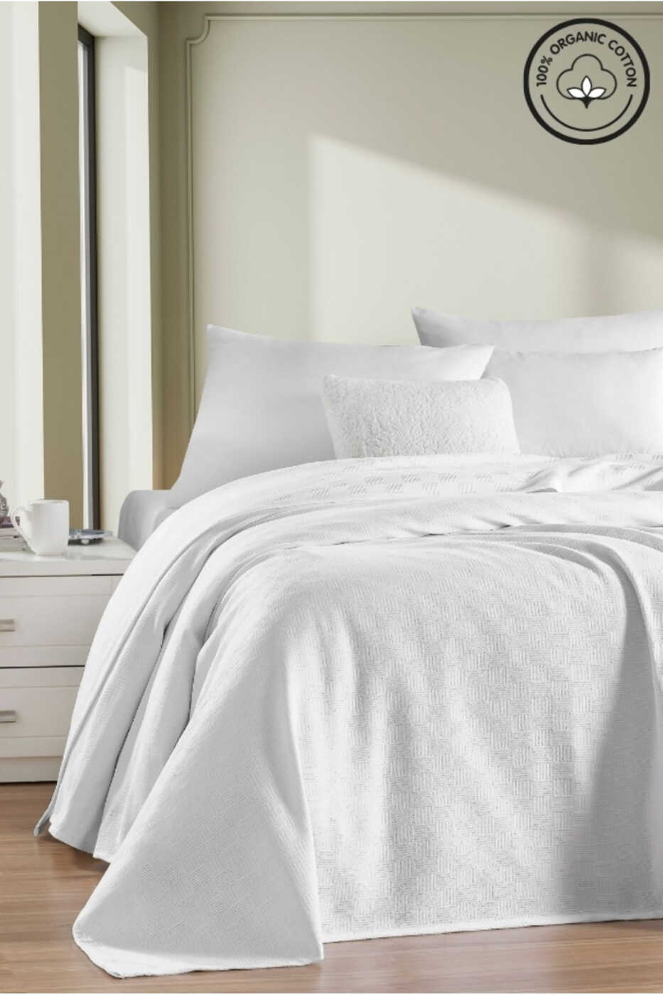 pike, çift kişilik pike, yatak örtüsü, pamuk pike, küçük dama desen, otel pike, lüks pike, beyaz pike