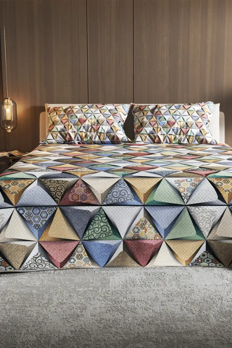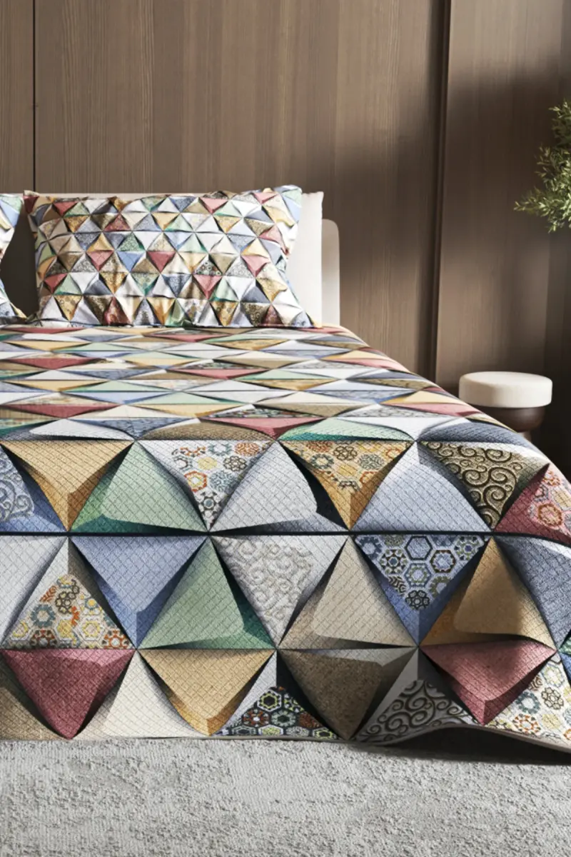 Pique Set Jacquard Woven Cotton 3D Digital Print Deep Triangle-Colorful brings unique comfort while adding a modern touch to your bedroom. Thanks to its jacquard woven fabric made of high-quality cotton yarn, it is both durable and has a soft touch. The Deep Triangle pattern, designed with 3D digital printing technology, offers a visual feast by adding depth and vitality to your room. The dynamic harmony of colorful triangles transforms the atmosphere of your bedroom into an energetic and modern atmosphere.This pique set not only offers a stylish design but also stands out with its practical usage features. Thanks to its cotton structure, it has a breathable surface, which prevents sweating and allows you to have a comfortable sleep experience throughout the night. Jacquard weaving adds extra durability to the fabric and helps the colors maintain their vibrancy for a long time. 3D digital printing technology minimizes the risk of fading and wear of the patterns, ensuring that your pique set stays as new as the first day.The Deep Triangle patterned pique set is an ideal choice for those who want to add a different dimension to their bedroom. The vibrancy of the colors and the modern lines of the pattern easily adapt to your room's decoration. Whether you have a minimalist style or prefer a more colorful and energetic decoration, this pique set can adapt perfectly to any style. Made of high-quality materials, it offers a long-lasting use and appeals to your taste with its stylish design.The pique set is also very easy to care for. Thanks to its machine-washable feature, it offers practical use. It is recommended to wash it at low temperature and with similar colors to preserve the vibrancy of its colors. Its non-ironing structure saves you time and helps you achieve a regular and stylish look at all times.This pique set is a great gift option not only for yourself but also for your loved ones. You can give your loved ones a stylish and useful gift on special occasions such as birthdays, wedding anniversaries or housewarming gifts. You can add a modern touch to their bedrooms and contribute to their comfortable and comfortable sleep experience.Choose the Pique Set Jacquard Woven Cotton 3D Digital Print Deep Triangle-Colorful to change the atmosphere of your bedroom and increase your sleep quality. This pique set, which offers style, comfort and quality together, will be an indispensable part of your bedroom. Every night, fall into a peaceful sleep with the vibrancy of the colors and the softness of the fabric and start the day refreshed. Remember, a good sleep is the basis of a healthy and happy life. Reflect your style and improve your sleep quality with this pique set.