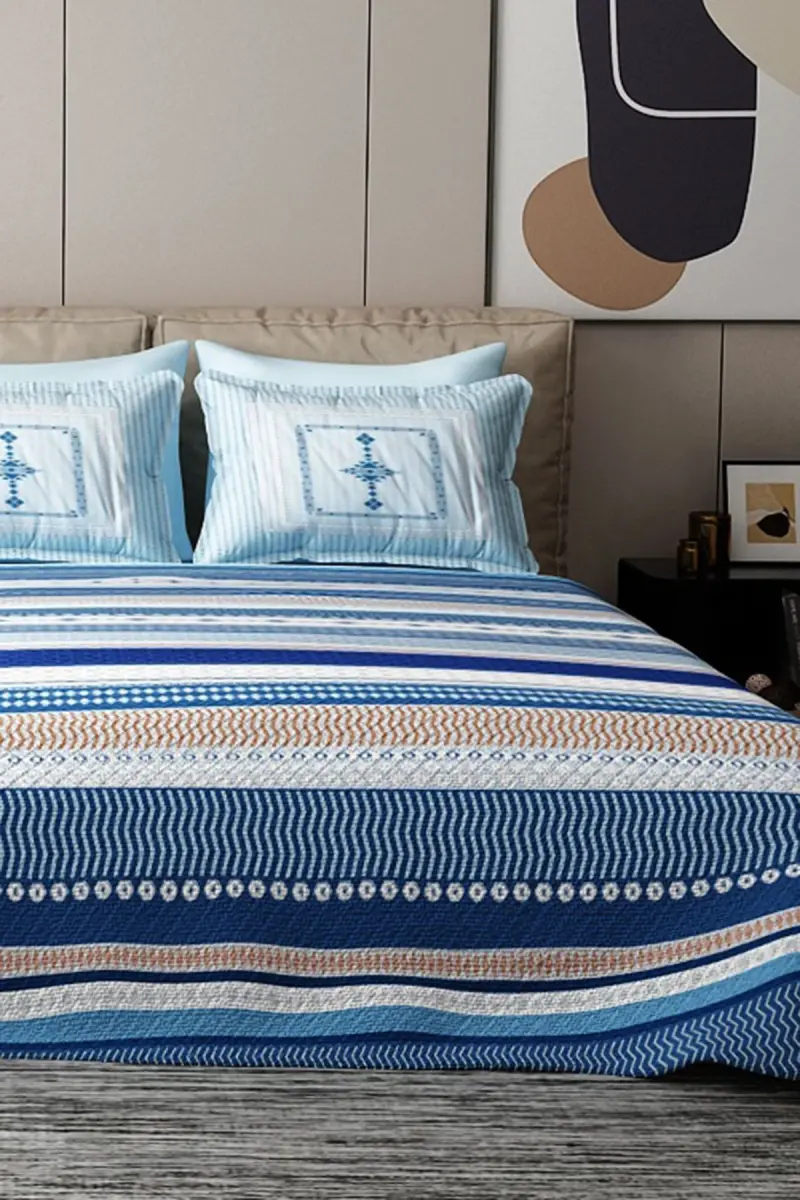 Pike Takımı Pamuklu Çift Kişilik Jakar Dokuma Yatak Örtüsü Blue Deep-Mavi