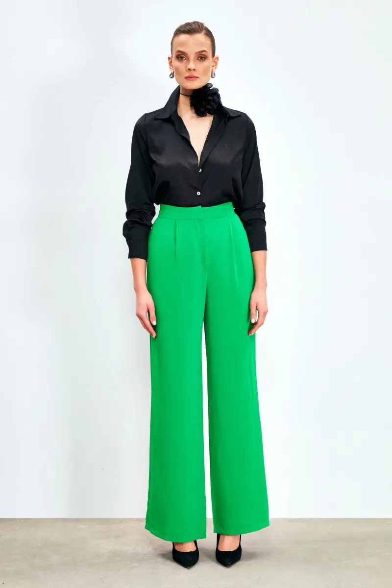 Pileli Krep Pantolon - Yeşil, Sateen güvencesiyle sunulan, şıklığı ve rahatlığı bir arada sunan özel bir tasarımdır. Bu pantolon, gardırobunuzun vazgeçilmezi olmaya aday. Ürün, kampanya fiyatıyla satışa sunulmuş olup, sınırlı sayıda stokta bulunmaktadır. Şık ve modern tasarımı ile dikkat çeken bu pantolon, yüksek bel kesimi, fermuarlı ve kancalı kapama detayı ile hem rahat hem de kullanışlı bir deneyim sunar. Geniş paça ve salaş kesimi sayesinde gün boyu hareket özgürlüğünüzü kısıtlamaz. Pileli krep kumaşı, pantolona hoş bir hareketlilik ve zarif bir görünüm kazandırır. Hem günlük kullanım hem de özel günler için ideal bir seçenektir. Yeşil rengi, kombinlerinize canlılık katarken, farklı üstlerle kolayca uyum sağlayarak stilinizi ön plana çıkarır. Trendyol güvencesiyle sunulan bu üründen en fazla 10 adet sipariş verebilirsiniz. 15 gün içinde ücretsiz iade imkanıyla, ürünü gönül rahatlığıyla deneyebilirsiniz. Şıklığı ve konforu bir arada arayanların tercihi olan Pileli Krep Pantolon - Yeşil, stilinize farklı bir boyut katacak.