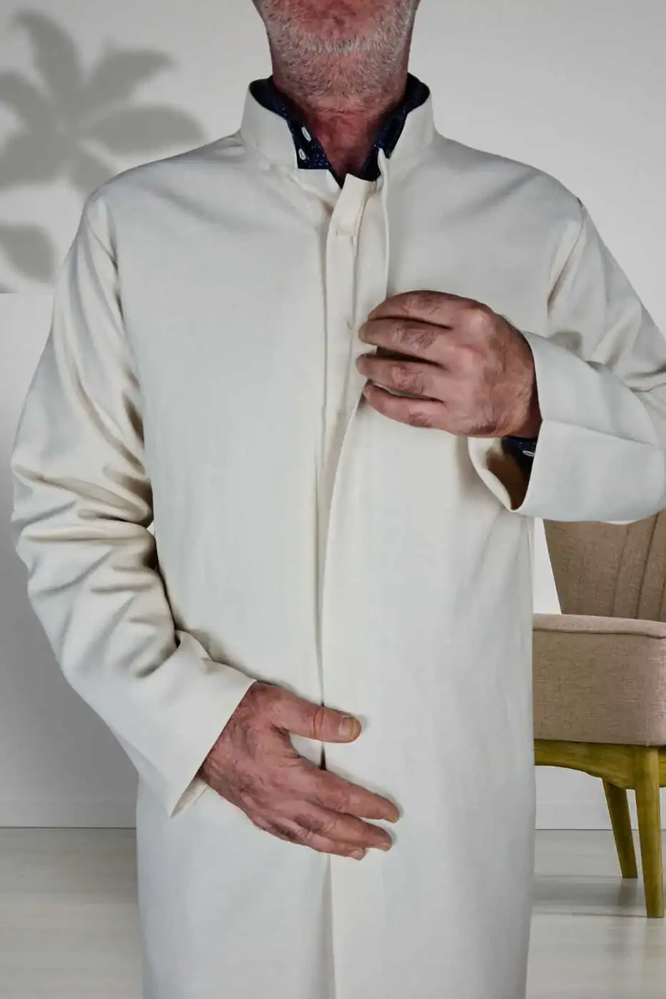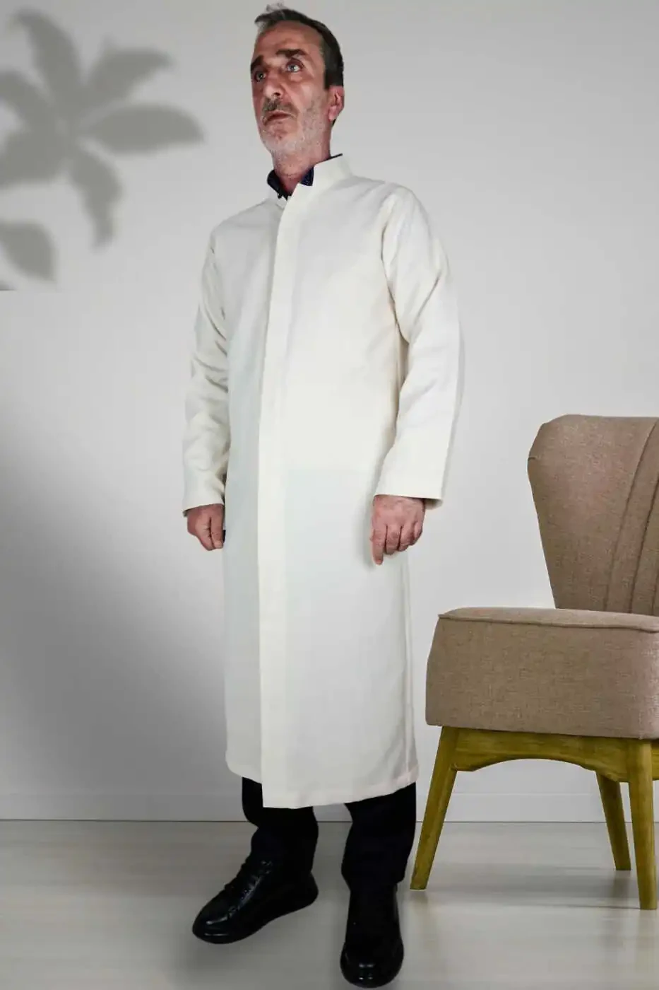 Hajj Umrah Clothes, which create an elegant silhouette with long sleeves and standard length, provide a comfortable experience with their relaxed fit. While the upright collar design gives a modern and stylish look, the button closure allows for easy use.