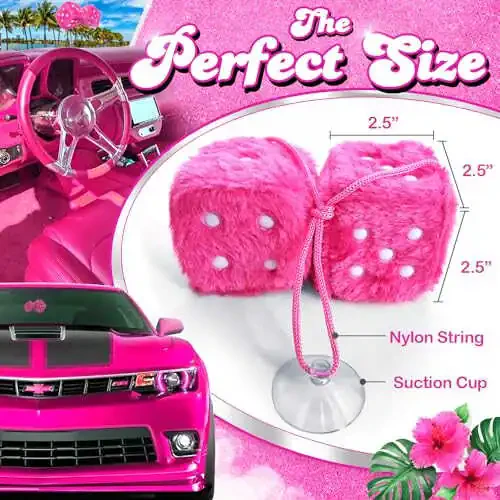 Made from soft and plush material, these dice can be hung on your rearview mirror or anywhere in your car's interior for a delightful decorative element. The pink and white color combination adds a vibrant touch to your car, while the retro style offers a striking look.