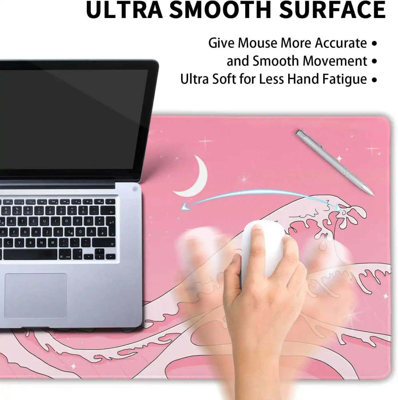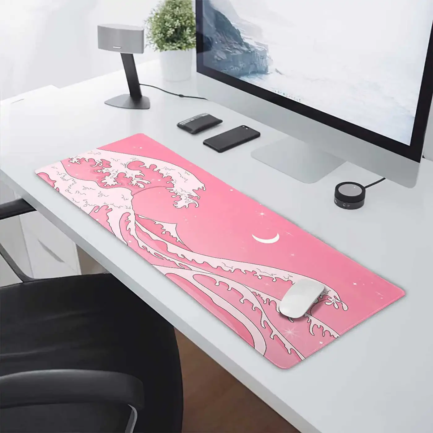 This adorable Japanese anime themed extended gaming mouse pad is the perfect choice for taking your gaming experience to the next level. The cute and aesthetic wave design adds a visually pleasing touch to your desktop, while the large size (31.5×11.8 inches) provides ample space for both your keyboard and mouse.