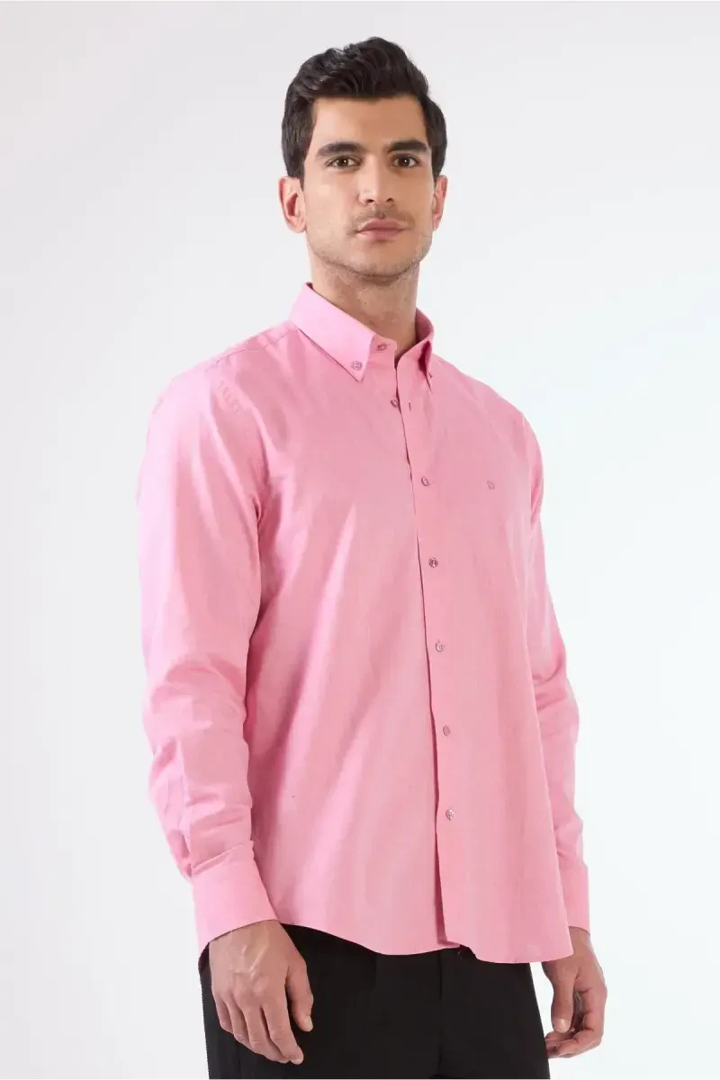 Elevate your style and sophistication with the Pink Men's Regular Fit Oxford Brent Button-Down Collar Long Sleeve Shirt.