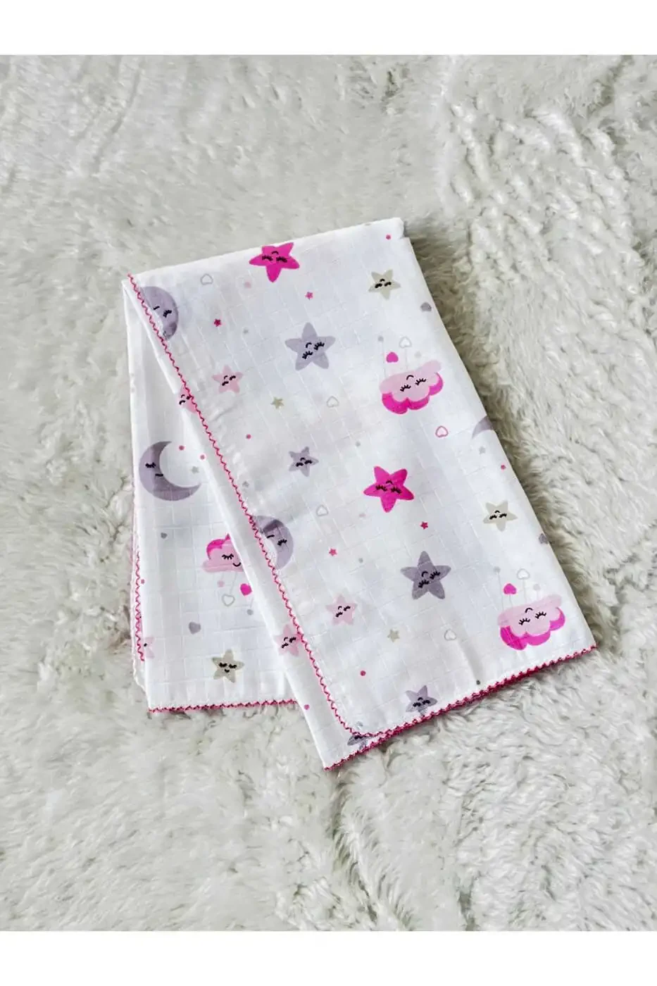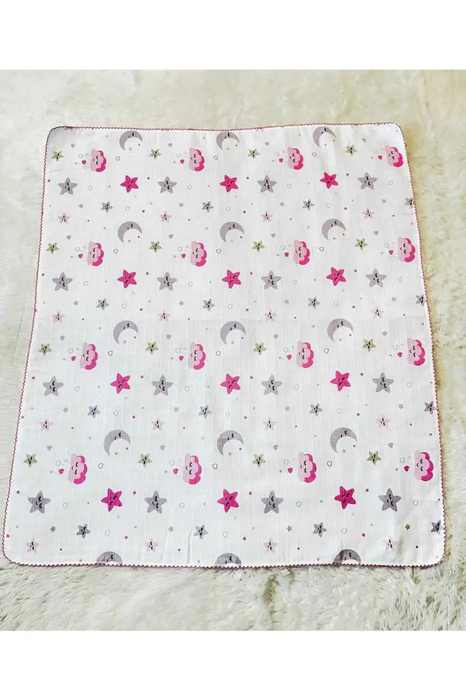 The perfect choice to adorn your little princess's sweet dreams! The pink star cloud patterned muslin baby swaddle blanket, with its soft texture and breathable fabric, will make your baby feel comfortable and safe.