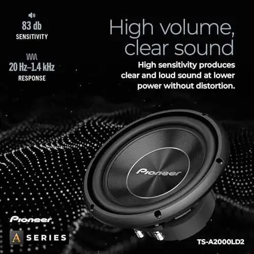 Pioneer 8" subwoofer, 700W subwoofer, 250W RMS, small enclosure use, powerful audio