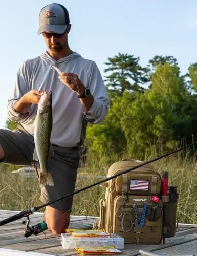 Organized Capacity for One-Day Fishing: Spacious main compartment fits up to 3 x 3600 tackle boxes (large version fits 3 x 3700). Multiple zippered pockets keep lures and tools neatly arranged, while side mesh holders secure bottles or pliers. Front and interior pockets protect small accessories and valuables. Dual rod straps safely hold up to 2 fishing rods Water-Resistant & Built to Last: Crafted from high-density polyester with a protective coating that repels light rain and splashes. Reinforced stitching and abrasion-resistant fabric stand up to rough terrain, keeping your tackle protected in demanding outdoor conditions Expandable MOLLE System: Reinforced MOLLE webbing lets you attach extra pouches, pliers holders, fishing tools, or small accessories. High-density stitching keeps attacModazoneents stable and customizable for any outdoor setup Ergonomic & Comfortable Design: Breathable mesh padding improves airflow and reduces heat buildup. Adjustable shoulder straps and sling options distribute weight evenly for long fishing trips Multi-Scenario Outdoor Use: Break free from single-purpose bags with this versatile pack. Perfect for a full day of fishing, it easily stores rods, reels, lines, and essentials. Ideal for hiking, cycling, travel, or daily commuting, carrying snacks, water bottles, phone, power bank, or tools with ease.