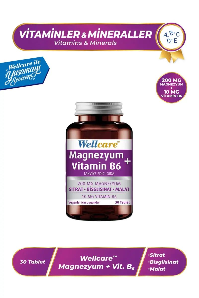 Магний+Витамин B6 Пищевая добавка 30 таблеток - Для энергии, мышц, нервов и здоровья костей