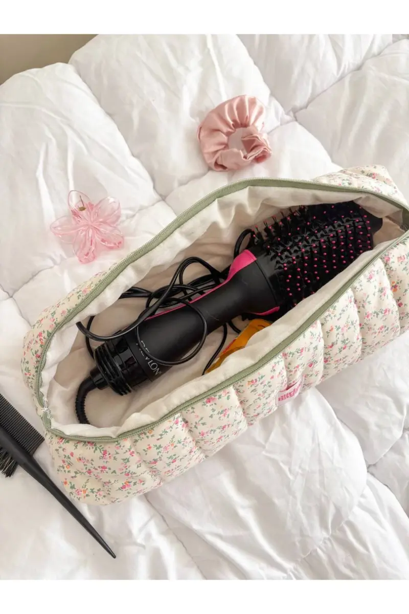 Bu ürün girlsybags tarafından gönderilecektir.Kampanya fiyatından satılmak üzere 50 adetten fazla stok sunulmuştur.Bir ürün, birden fazla satıcı tarafından satılabilir. Birden fazla satıcı tarafından satışa sunulan ürünlerin satıcıları ürün için belirledikleri fiyata, satıcı puanlarına, teslimat statülerine, ürünlerdeki promosyonlara, kargonun bedava olup olmamasına ve ürünlerin hızlı teslimat ile teslim edilip edilememesine, ürünlerin stok ve kategorileri bilgilerine göre sıralanmaktadır.Bu üründen en fazla 20 adet sipariş verilebilir. 20 adedin üzerindeki siparişleri Trendyol iptal etme hakkını saklı tutar. Belirlenen bu limit kurumsal siparişlerde geçerli olmayıp, kurumsal siparişler için farklı limitler belirlenebilmektedir.15 gün içinde ücretsiz iade. Detaylı bilgi için [page="return_conditions"]tıklayın .- Pıtırcık Çiçek desenli tasarımı ile hem şık hem de fonksiyonel bir kullanım sunar.- Airwrap ve Airstrait uyumlu yapısı sayesinde saç şekillendirme cihazlarınız için özel olarak tasarlanmıştır.- Seyahatlerde kolay taşınabilirlik için ideal boyutlarda ve hafif malzemeden üretilmiştir.- 39x15 cm. ölçüleridir.- Pamuk kumaşın yumuşak dokusu, saç şekillendirme cihazlarınızın zarar görmesini önler.- Bej rengi ve poplin pamuk kumaş kombinasyonu, modern ve zarif bir görünüm sağlar.- TR menşeli olup, yerel üretim kalitesini yansıtır.
