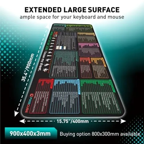 Excel Shortcut Mouse Pad XXL | Pixiecube Office Gaming Mousepad | Non-Slip Stitched Edge