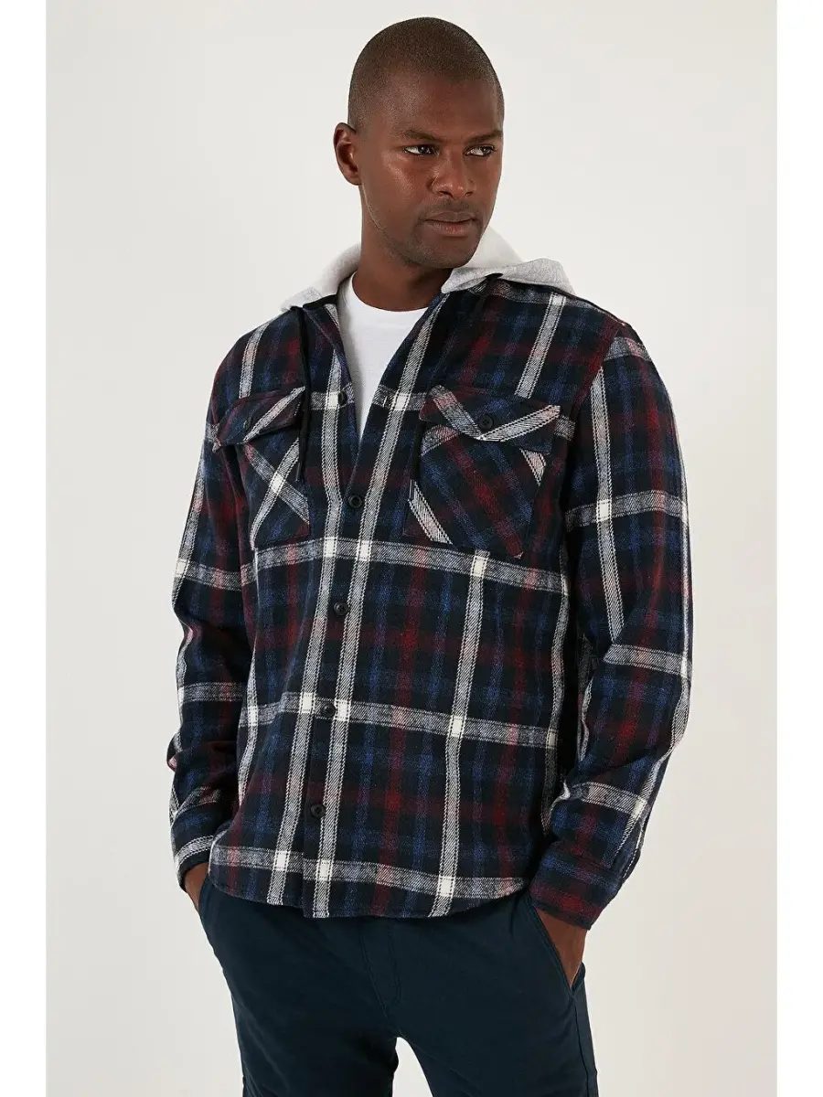 Add a unique touch to your style with the Markastok Buratti Plaid Double Pocket Hooded Lumberjack Shirt. This shirt, coded CF22W2650-Navy Blue, combines the lumberjack style with a modern twist, making it a candidate to be an indispensable part of your wardrobe. Thanks to its standard and regular fit, it adapts to every body type, while its acrylic-blend fabric offers comfortable use all day long. The hooded design provides extra protection in cold weather and adds a dynamic touch to your style. The double pocket detail on the front of the shirt offers both a stylish look and a practical solution for carrying small items with you. Its long-sleeved design makes it an ideal choice in transitional seasons and cool weather. The plaid pattern preserves the classic texture of the lumberjack shirt, while the navy blue color offers a modern and stylish look. This shirt is a versatile piece that you can easily choose for daily use, as well as for your weekend activities, nature walks or meeting up with friends. You can easily combine it with jeans, chino pants or cargo pants to create different styles. Produced with Markastok Buratti quality, this lumberjack shirt offers long-lasting and durable use. Thanks to the quality of its fabric, you will not encounter problems such as shrinkage or fading after washing. It is an ideal choice for men who prioritize comfort without sacrificing their style. Designed for gentlemen who are looking for elegance and comfort together, this shirt will make you stand out in any environment. Discover this special piece that should be in your wardrobe and take your style one step further. This lumberjack shirt, which stands out with its plaid pattern, hood detail and double pocket design, will be the favorite of stylish men. The navy blue color allows you to make different combinations, while the acrylic-blend fabric offers comfort all day long. It is now very easy to achieve both a stylish and comfortable look with Markastok Buratti Lumberjack Shirt.