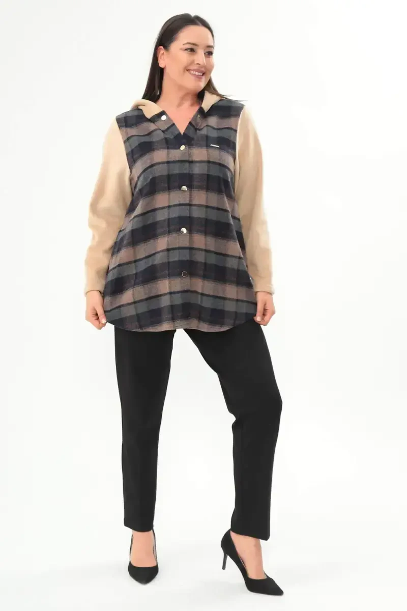 Introducing the Plaid Patterned Snap Button Pocket Detailed Beige Coat, an eye-catching piece that combines softness and style for your everyday wardrobe.