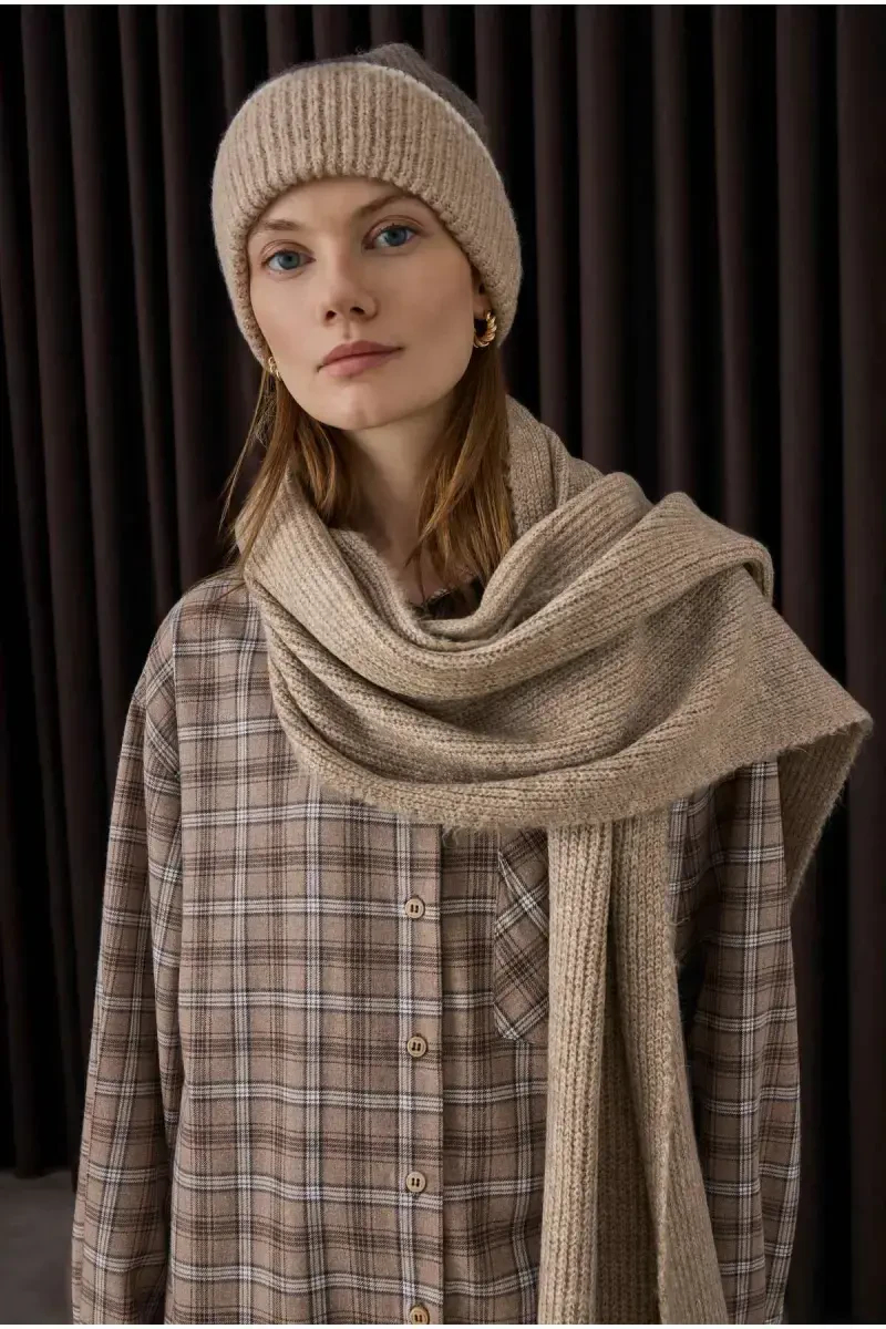 If you're looking for a warm and comfortable touch to complete your style in cold weather, the Plain Knit Scarf Light Mink-Mink is for you! This elegant scarf combines both style and functionality, making it a must-have piece in your wardrobe. The harmony of light mink and mink tones offers a sophisticated look that you can easily combine with any outfit. Thanks to its soft texture, it caresses your skin and provides comfortable use all day long.Product DescriptionThe Plain Knit Scarf Light Mink-Mink keeps you warm on cold winter days while allowing you to maintain your elegance. It is made of high-quality material and offers long-lasting use. The plain knit pattern of the scarf creates a classic and timeless look, while the elegant combination of light mink and mink colors adds a sophisticated touch to any outfit. Whether you prefer it for daily use or special occasions, this scarf will keep you warm and complete your style. The soft texture of the scarf gently touches your skin, providing a comfortable wearing experience all day long. You can easily use this scarf when going out in cold weather or even while sitting at home, making it a practical and stylish option. The Plain Knit Scarf Light Mink-Mink is not just an accessory, but also a style statement. Appealing to all ages and styles, this scarf can also be a great gift option for your loved ones. By giving them a useful and stylish gift, you can make them feel that you are with them on cold winter days. The easy-to-clean feature of the scarf provides ease of use and ensures that it stays as new as the first day for a long time. Being machine washable offers a practical solution in a busy life. The Plain Knit Scarf Light Mink-Mink is a candidate to be one of the most loved pieces of your wardrobe. Do not compromise on your style even in cold weather with this scarf that keeps you warm and offers a stylish look. Remember, you can take each combination one step further with the right accessory choice. This scarf is not just an accessory, but also an expression that reflects your personal style. Choose the Plain Knit Scarf Light Mink-Mink to feel special and complete your style.Product Features* Made of high-quality material.* It has a soft and comfortable texture.* It has a light mink and mink color combination.* It offers a classic look with its plain knit pattern.* It can be easily combined with any outfit.* Keeps you warm in cold weather.* Provides long-lasting use.* It has an easy-to-clean feature.* Machine washable.* Appeals to all ages and styles.* Suitable for daily use and special occasions.* It has a stylish and elegant design.* Made of skin-friendly material.* It is an ideal gift option.Additional InformationIt is recommended to follow the washing instructions on the label for the long life of the product. You can wash at low temperatures to preserve the vibrancy of the colors. When you are not using the product, you can store it folded or hanging. The Plain Knit Scarf Light Mink-Mink is a practical and stylish accessory that you can always have with you.