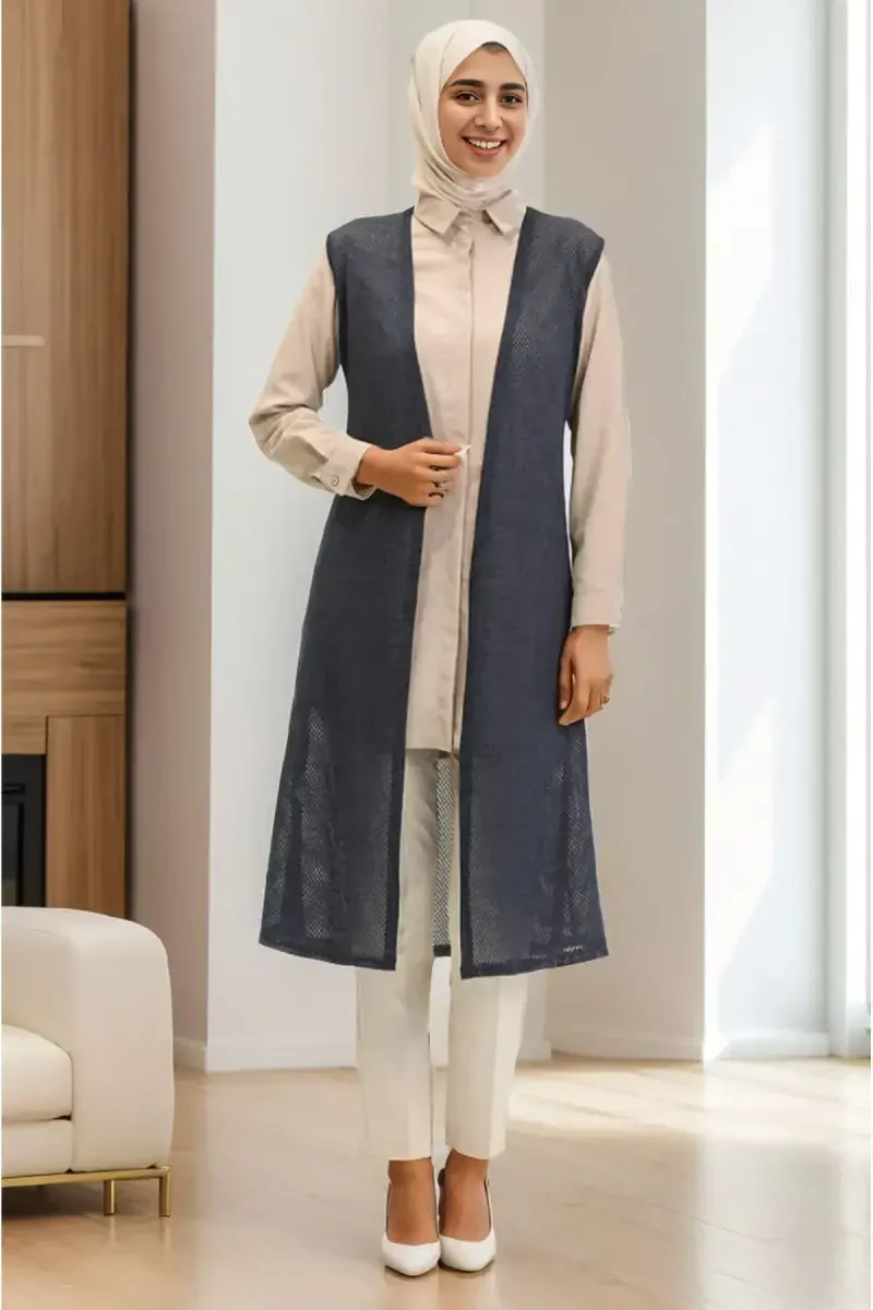 Plain Long Spring Summer Soft Vest is a candidate to be an indispensable part of your wardrobe! This stylish and comfortable vest will accompany you in both spring and summer, adding an elegant touch to every combination. You can easily use this vest in daily wear or on special occasions, and its navy blue color easily adapts to any style. Thanks to its breathable lightweight fabric, it offers comfortable use all day long, while its long cut highlights your elegance. This vest, which is also available in plus sizes, adapts to every body type and makes you feel good. This vest, specially designed for mothers, is an ideal option to accompany you in your daily rush by offering both comfort and elegance. Thanks to its simple design, you can easily combine it with different accessories and clothes and reflect your own style. Whether you create a sporty look with a t-shirt and jeans, or create a more special combination with a stylish blouse and skirt. This vest will be one of the most used pieces in your wardrobe. With its soft texture, light structure and stylish appearance, this vest, which you can prefer in every season, offers the perfect combination of comfort and style. While you achieve a striking appearance in every environment with the elegance of navy blue, you can maintain your freedom of movement all day long thanks to its comfortable cut. Plain Long Spring Summer Soft Vest is not just a piece of clothing, but also a style statement. You should definitely try this vest to feel special and highlight your elegance. This vest, which appeals to all ages and styles, will be indispensable for your wardrobe.