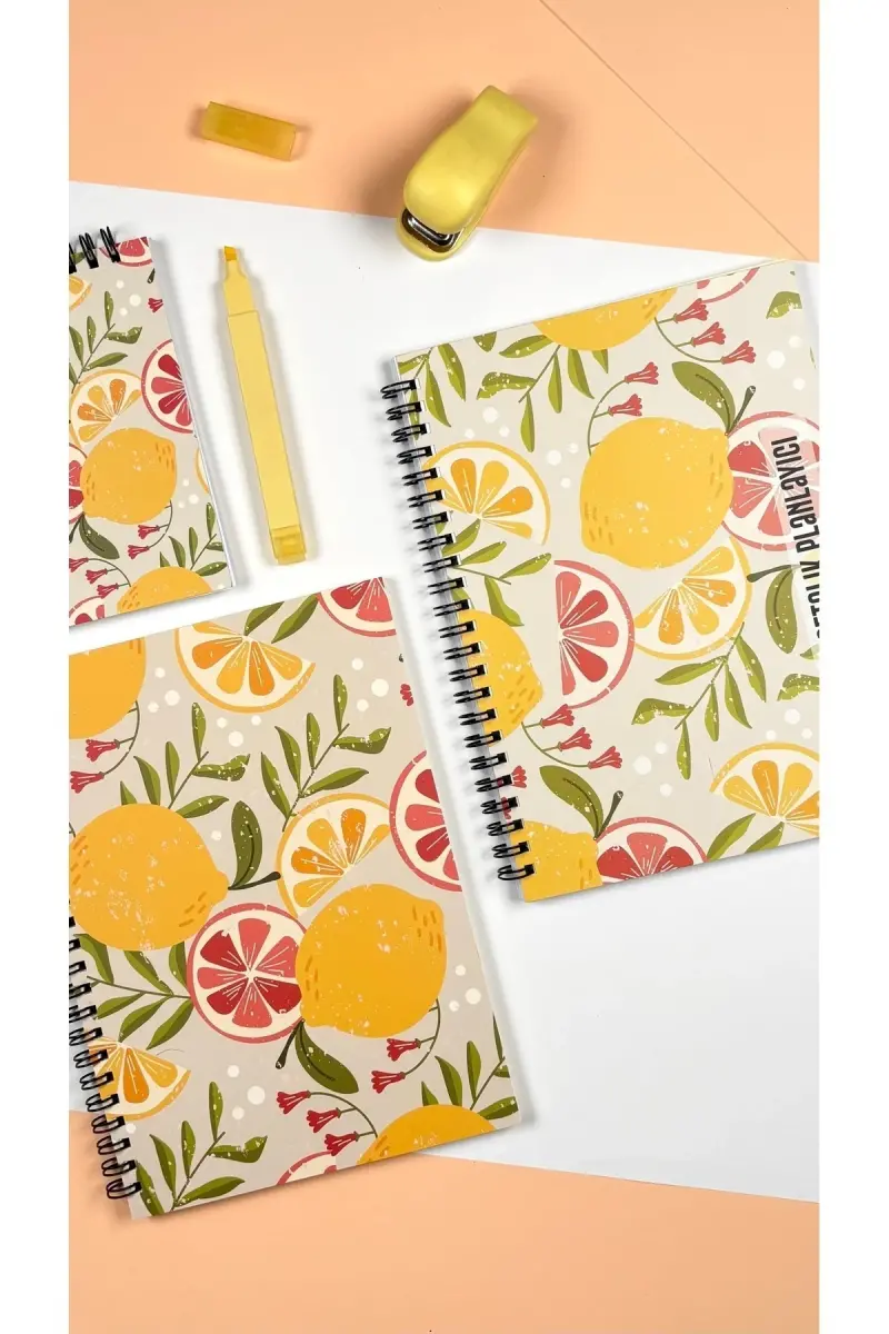 Apeirona tarafından özenle hazırlanan Planlama Seti ile hayatınızı organize etmenin ve verimliliğinizi artırmanın tam zamanı! Bu özel set, günlük, haftalık planlarınızı yapabileceğiniz ve önemli notlarınızı alabileceğiniz üç ayrı defterden oluşmaktadır. Set içeriğinde; Haftalık Planlayıcı, Günlük Planlayıcı ve To-Do List / Yapılacaklar Not Defteri bulunmaktadır. Limon-Limon temasıyla tasarlanan bu set, hem işlevsel hem de göz alıcı bir görünüm sunar. İster kendiniz için alın, ister sevdiklerinize hediye edin, bu planlama seti hayatınıza düzen ve renk katacak.Haftalık Planlayıcı ile tüm haftanızı tek bir bakışta görebilir, randevularınızı, toplantılarınızı ve önemli aktivitelerinizi kolayca planlayabilirsiniz. Her sayfada yılın bir haftası için ayrılmış alan sayesinde, tüm yıl boyunca düzenli bir şekilde ilerleyebilirsiniz. Sayfaların arkasına notlar alarak, haftanızla ilgili ek bilgileri de kaydedebilirsiniz.Günlük Planlayıcı Defteri ile her güne özel detaylı planlar yapabilirsiniz. Gün içindeki hedeflerinizi belirleyebilir, önceliklerinizi sıralayabilir ve gün sonunda neleri başardığınızı gözden geçirebilirsiniz. Bu defter, gününüzü daha verimli geçirmenize ve hedeflerinize ulaşmanıza yardımcı olacaktır.To-Do List / Yapılacaklar Not Defteri ise hızlı notlar almak, alışveriş listesi oluşturmak veya aklınıza gelen fikirleri kaydetmek için idealdir. Çanta boyutu sayesinde her zaman yanınızda taşıyabilir ve ihtiyaç duyduğunuz her an kullanabilirsiniz. Yapılacaklar listenizi önceliklendirerek, önemli işlerinizi aksatmadan tamamlayabilirsiniz.Bu set, yüksek kaliteli malzemelerden üretilmiştir. Defterlerin kapakları 400gr. selefonlu bristol kapak olup, suya karşı dayanıklıdır. İç sayfalar ise farklı gramajlarda (90gr ve 110gr) 1. hamur kağıt veya ivory kalın fildişi iç kağıttan oluşmaktadır. Çelik spiraller sayesinde sayfaları kolayca çevirebilir ve defterleri rahatça kullanabilirsiniz.Planlama Seti ile daha organize, daha verimli ve daha başarılı bir hayata adım atın. Unutmayın, iyi bir planlama her zaman başarıya giden yolda önemli bir adımdır.