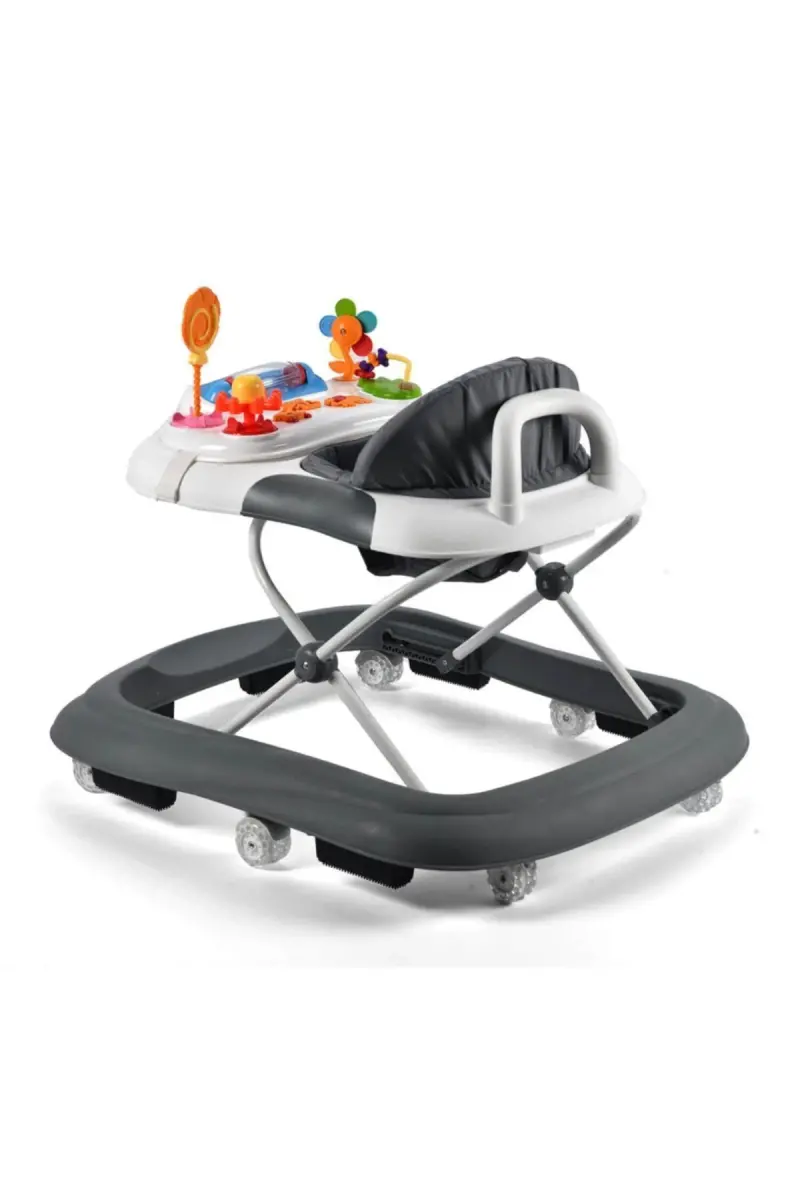 Plano Oyuncaklı Müzikli 3 Kademeli Örümcek Bebek Yürüteci Beyaz Gri-Gri
