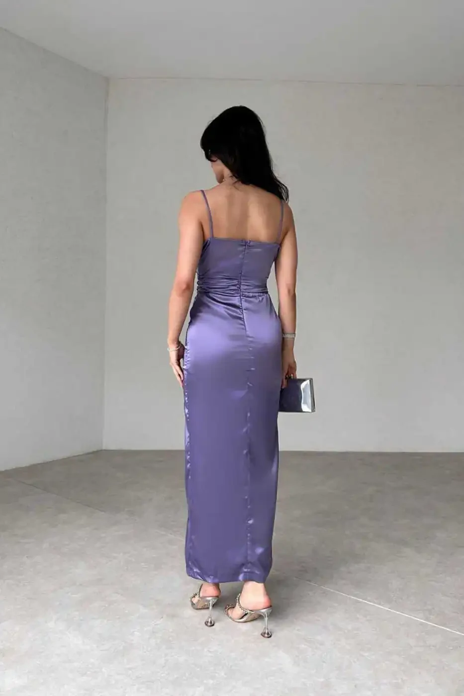Лиловое атласное платье с разрезом | Стильный и элегантный дизайн