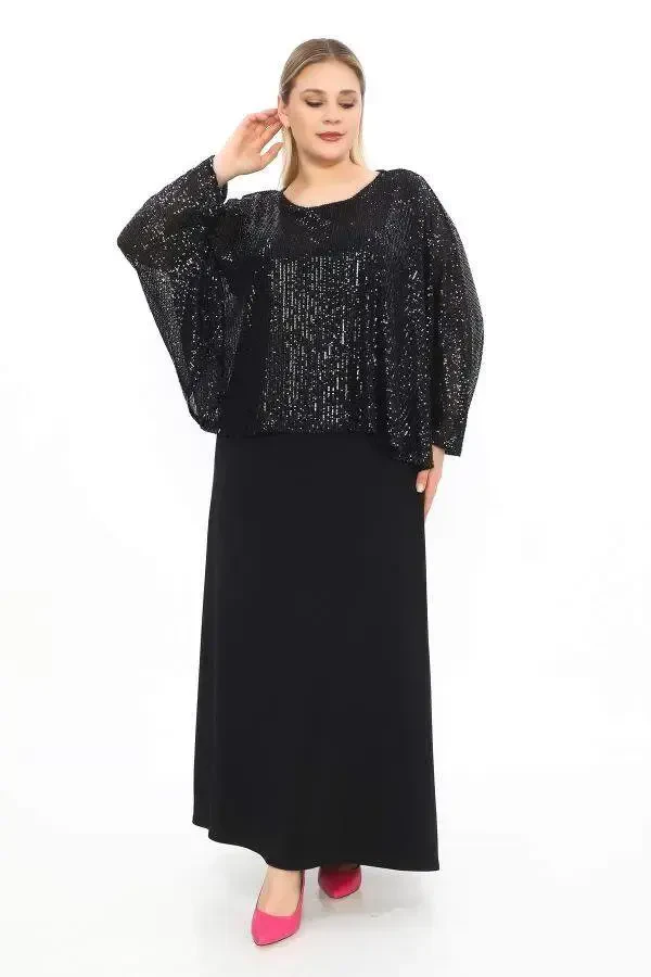 Станьте звездой особых случаев с платьем больших размеров с накидкой, которое подчеркнет вашу элегантность и изящество! Это привлекательное платье имеет уникальный вид благодаря своему дизайну, украшенному пайетками, и детали накидки. Специально разработанное для больших размеров, это платье идеально облегает ваши формы, обеспечивая комфортный и стильный опыт. Платье изящной длины 155 см идеально подходит для тех, кто ищет как современный, так и классический стиль. Благодаря высококачественной ткани и тщательно продуманным деталям оно станет незаменимой частью вашего гардероба на долгие годы.Это платье, специально разработанное для женщин больших размеров, подходит для размеров 44-46. Вы можете более точно выбрать свой размер, ориентируясь на то, как оно смотрится на модели: Наша модель ростом 1,79 см, весом 79 кг и носит платье 44-46 размера. Параметры модели: Грудь: 105 см, Талия: 95 см, Бедра: 125 см. Эти измерения помогут вам выбрать свой размер.Пайетки придают платью сияющий и эффектный вид, а накидка изящно драпирует плечи, создавая изысканный образ. Ткань из полиэстера и лайкры обеспечивает как удобную носку, так и красивую облегающую посадку. Прочная ткань обеспечивает длительный срок службы.В этом платье вы можете с комфортом посещать шикарные приемы, вечеринки и торжества, и оно сделает вас самой стильной женщиной вечера. Вы можете создавать разные стили в зависимости от выбора аксессуаров и отражать свой собственный стиль. Вы можете дополнить свой образ туфлями на каблуке и изящной сумочкой.Инструкции по стирке изделия можно найти на этикетке изделия. Следуя инструкциям на этикетке, вы можете обеспечить долгий срок службы вашего платья. Рекомендуется химчистка.