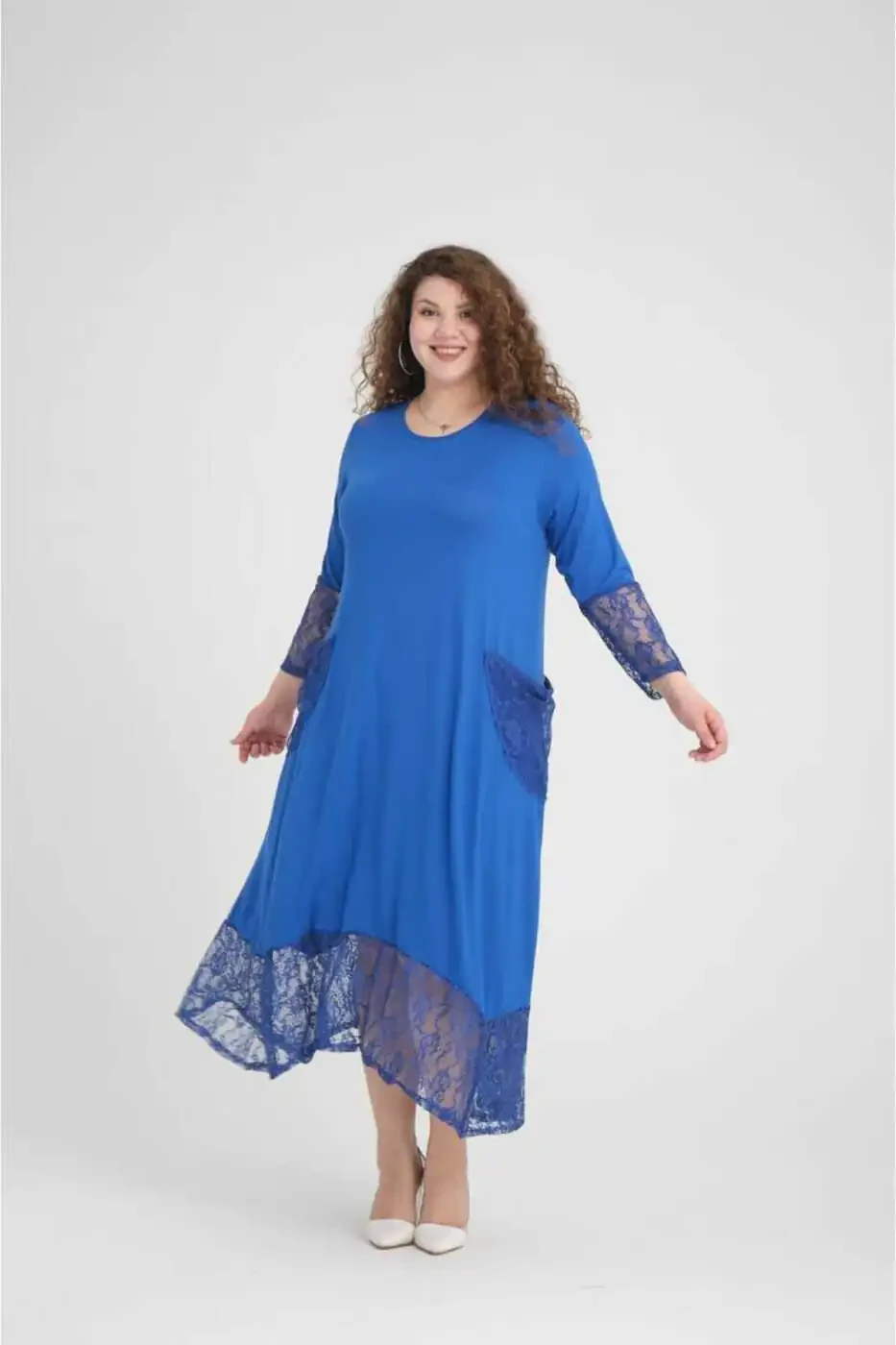 Пусть ваш стиль заговорит с помощью платья большого размера с синими кружевными деталями!