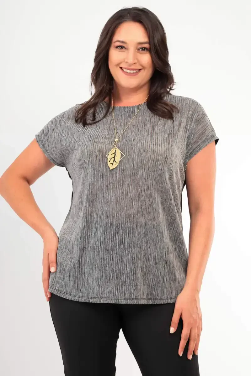 **Большая полосатая блузка серого цвета с блестками и низким рукавом**
