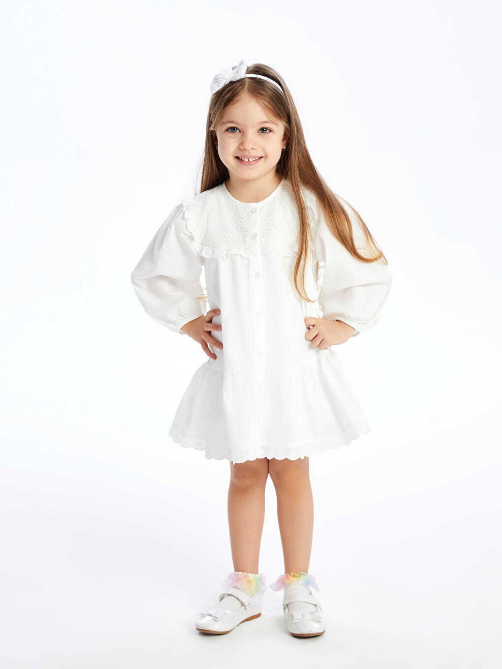Вы можете легко носить это платье по особым случаям или на каждый день. Чтобы дополнить стиль вашей дочери, его можно сочетать с цветными колготками, туфлями или ободками для волос.