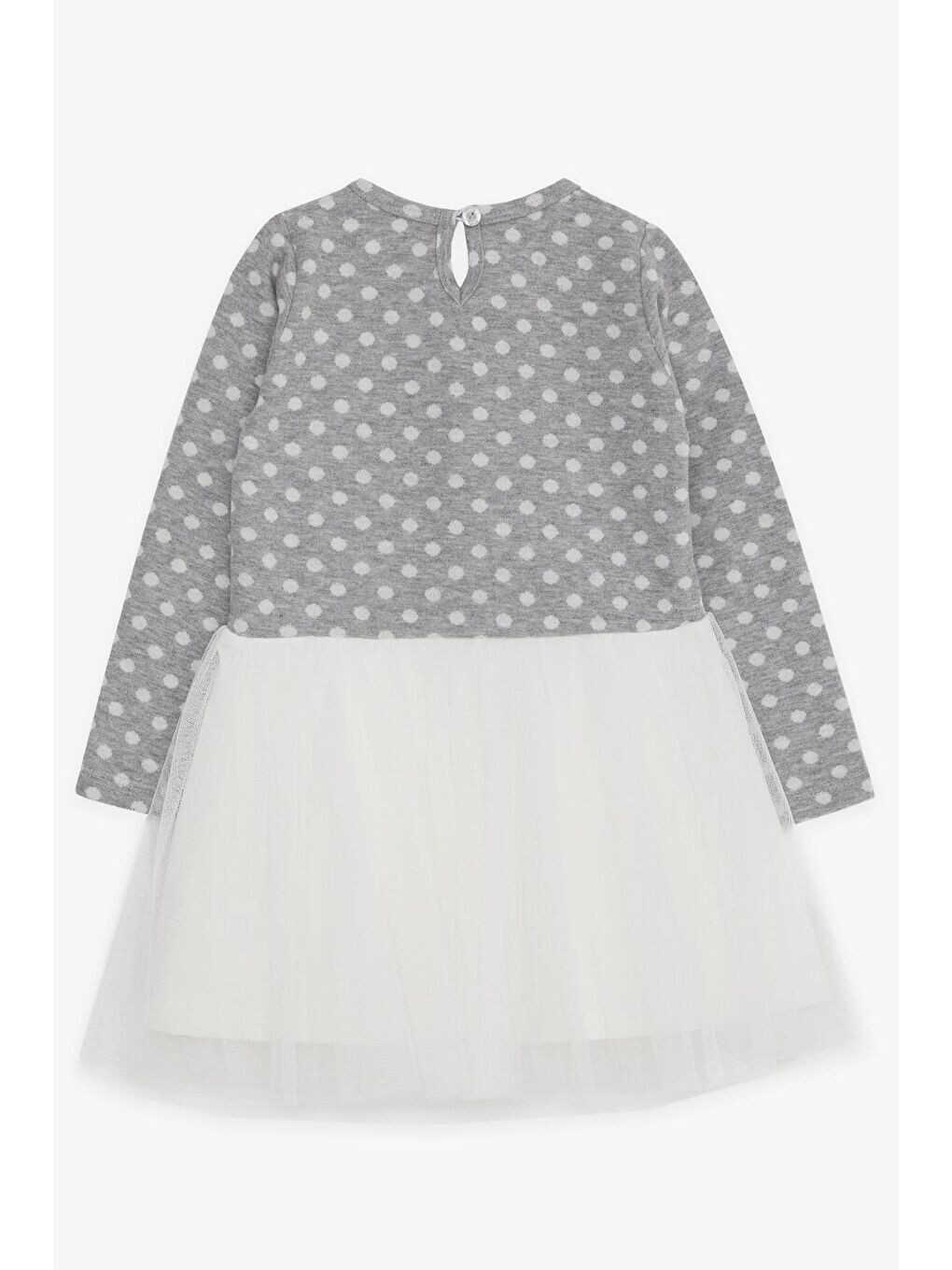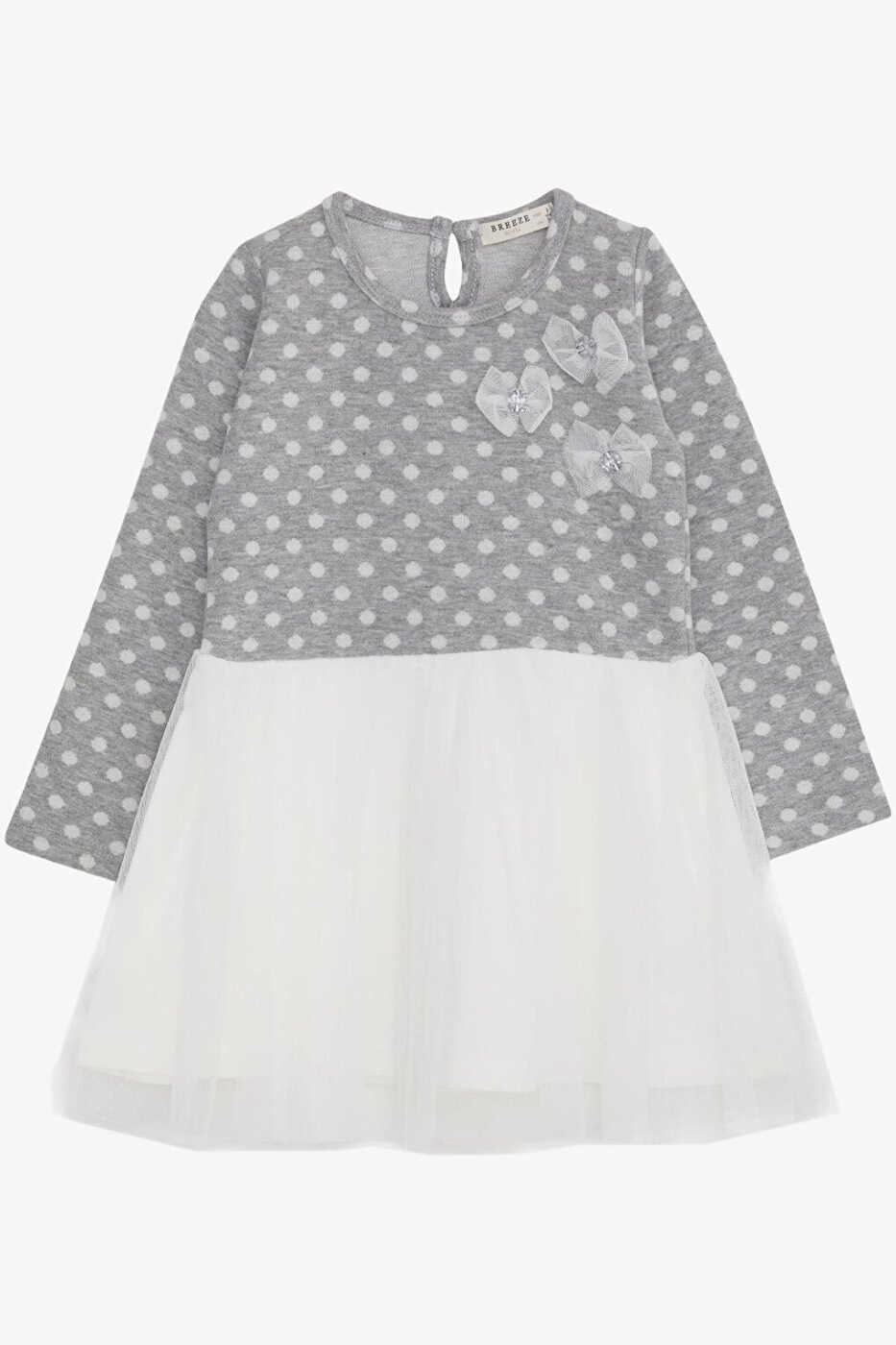 Платье для девочек с длинным рукавом, тюлем и бантом, светло-серый меланж (1,5-5 лет) - [Название бренда]