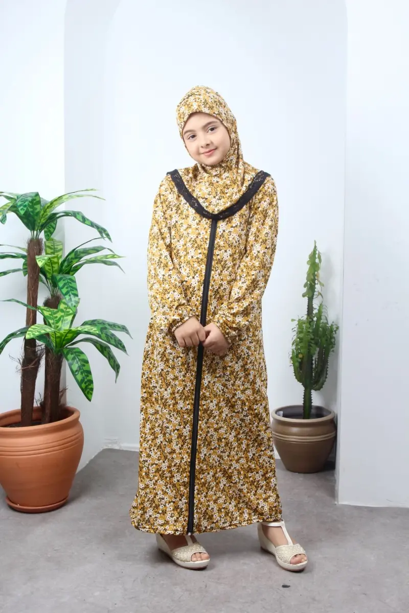 Детское молитвенное платье для девочки с цветочным рисунком, желтое - это тщательно разработанный продукт, который позволяет маленьким леди чувствовать себя комфортно и стильно во время совершения намаза. Этот специальный дизайн, предлагаемый DEFKA EV GİYİM, выделяется своим высококачественным материалом и полезными деталями. Благодаря легкости и воздухопроницаемости ткани Helen, ваш ребенок будет чувствовать себя комфортно в течение всего дня. Цветочные узоры добавляют платью живости и радости, а желтый цвет придает энергичный вид. Это молитвенное платье можно легко носить не только во время молитвы, но и в особых случаях. Благодаря практичному использованию, ваши дети могут надевать и снимать его самостоятельно. Изделие состоит из одной части, а головной убор прикреплен к платью, что предотвращает проблему скольжения и не отвлекает внимание вашего ребенка во время молитвы. Эластичная часть подбородка под головным убором предотвращает видимость шеи и волос, помогая в полной мере выполнить требования к молитве. Кроме того, он обеспечивает практичность благодаря своему дизайну, который не требует использования шапочки. Детское молитвенное платье для девочки с цветочным рисунком, желтое, не подчеркивает линии тела благодаря своему свободному крою и может надеваться поверх одежды. Полурукав "летучая мышь" не ограничивает свободу движений и позволяет вашему ребенку свободно двигаться. Деталь с круглым вырезом обеспечивает комфортное использование в течение всего дня. Платье имеет собственную сумку, что делает его идеальным решением для работающих мам, путешественников и тех, кто хочет молиться на улице. Оно легко помещается в вашу сумку и всегда готово к использованию. Этот продукт сочетает в себе практичность и элегантность, делая молитвы маленьких леди более приятными. Это молитвенное платье, произведенное с качеством DEFKA EV GİYİM, является долговечным и износостойким. Это специальный дизайн, который вашему ребенку понравится носить. Его можно легко использовать в течение 4 сезонов, сохраняя свой стиль в любой обстановке. Помогите своему ребенку совершать молитвы в мире и стиле с детским молитвенным платьем для девочки с цветочным рисунком, желтое. Этот специальный дизайн понравится и вашему ребенку, и вам, и вы сможете использовать его долгие годы.