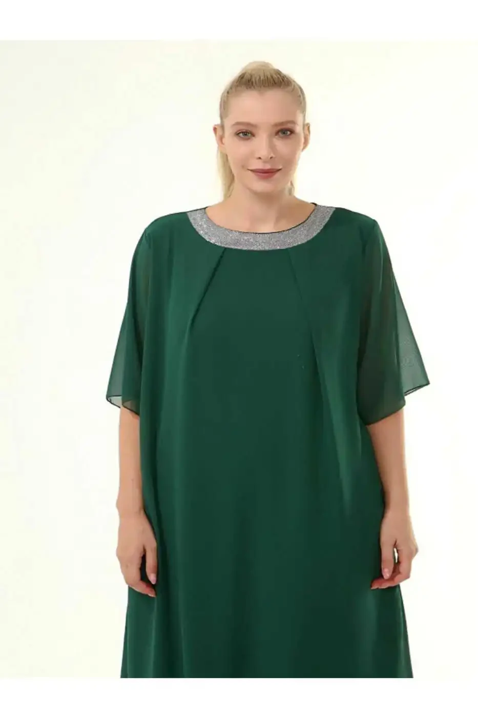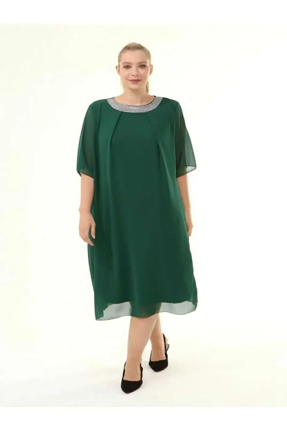 Платье из шифона большого размера с блестящим воротником и рукавами 4/3, сочетающее в себе стиль и комфорт, — это обязательный элемент гардероба каждой женщины. Элегантный и современный дизайн платья позволит вам выглядеть стильно как на особых мероприятиях, так и в повседневной жизни. Блестящий воротник с блестками и легкая шифоновая ткань создают потрясающий образ.