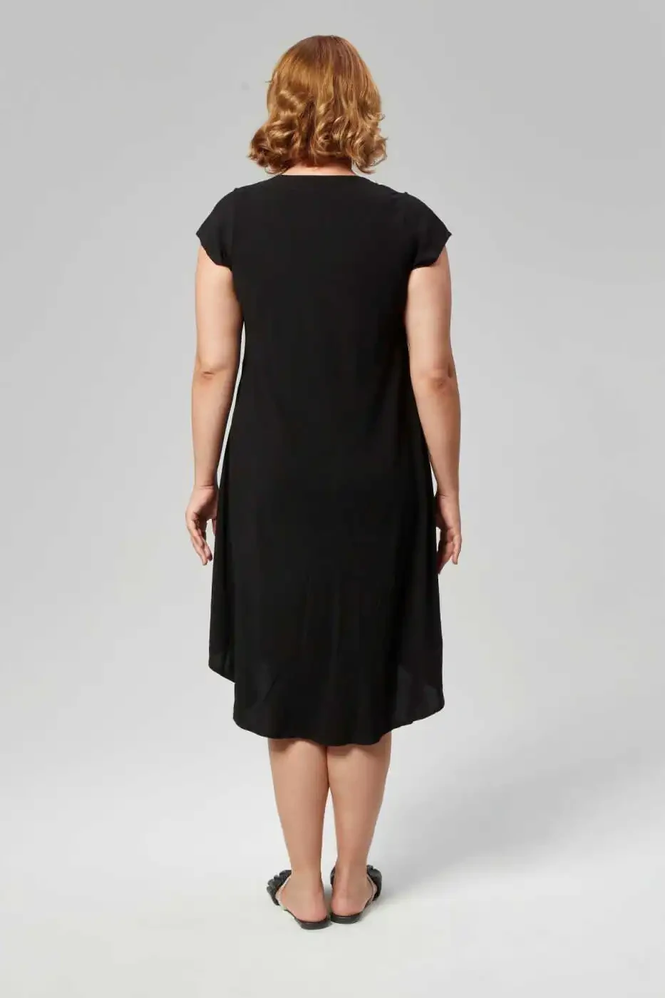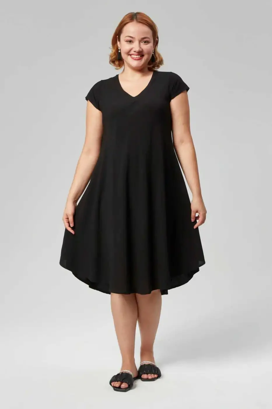 платье большого размера, платье с v-образным вырезом, платье с коротким рукавом, платье из вискозы, комфортное платье, черное платье, летнее платье, повседневное платье