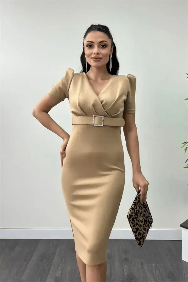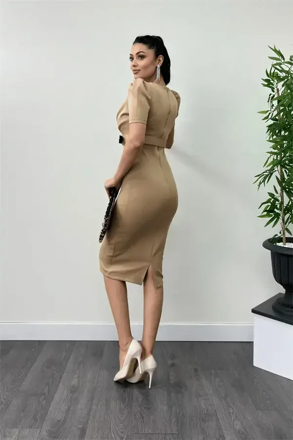 Scuba Kumaş Kemer Detaylı Kalem Elbise - BEJ, modern kadının gardırobunda mutlaka bulunması gereken bir parçadır. Yüksek kaliteli scuba kumaşı sayesinde gün boyu rahatlık sunarken, vücuda oturan kesimiyle de şıklığınızı ön plana çıkarır. Elbisenin en dikkat çekici özelliği olan kemer detayı, belinizi vurgulayarak daha zarif bir görünüm elde etmenizi sağlar. Bej renginin zamansız şıklığı, elbiseyi hem özel davetlerde hem de iş ortamında rahatlıkla kullanabilmenize olanak tanır. İster topuklu ayakkabılarla şık bir kombin yapın, ister babetlerle daha rahat bir stil oluşturun, bu elbise her durumda size eşlik edecektir. Scuba kumaşın esnek yapısı, hareket özgürlüğünüzü kısıtlamadan gün boyu konfor sunar. Kalem etek kesimi, feminenliğinizi vurgularken, diz hizasındaki boyu da hem modern hem de klasik bir görünüm yaratır. Elbisenin dikiş detayları ve kaliteli işçiliği, uzun yıllar boyunca gardırobunuzun vazgeçilmezi olmasını sağlar. Scuba Kumaş Kemer Detaylı Kalem Elbise - BEJ, sadece bir elbise değil, aynı zamanda stilinizi yansıtan ve özgüveninizi artıran bir yatırımdır. Her mevsim giyilebilir yapısıyla, gardırobunuzdaki diğer parçalarla kolayca kombinleyebilir, farklı tarzlar yaratabilirsiniz. İş toplantılarından akşam yemeklerine, özel davetlerden günlük kullanıma kadar her ortamda şıklığınızı konuşturacak bu elbise, gardırobunuzun en sevilen parçası olmaya aday. Scuba kumaşın dayanıklılığı ve kolay bakımı sayesinde, uzun yıllar boyunca ilk günkü gibi yeni kalır. Kemer detayı, elbiseye farklı bir hava katarken, aynı zamanda kişisel stilinizi yansıtmanıza da olanak tanır. Kemerinizi farklı renk ve modellerle değiştirerek, her seferinde farklı bir görünüm elde edebilirsiniz. Bej renginin sıcak tonu, her cilt tonuna uyum sağlar ve her türlü aksesuarla kolayca kombinlenebilir. Scuba Kumaş Kemer Detaylı Kalem Elbise - BEJ ile her zaman şık, zarif ve kendinden emin hissedeceksiniz.