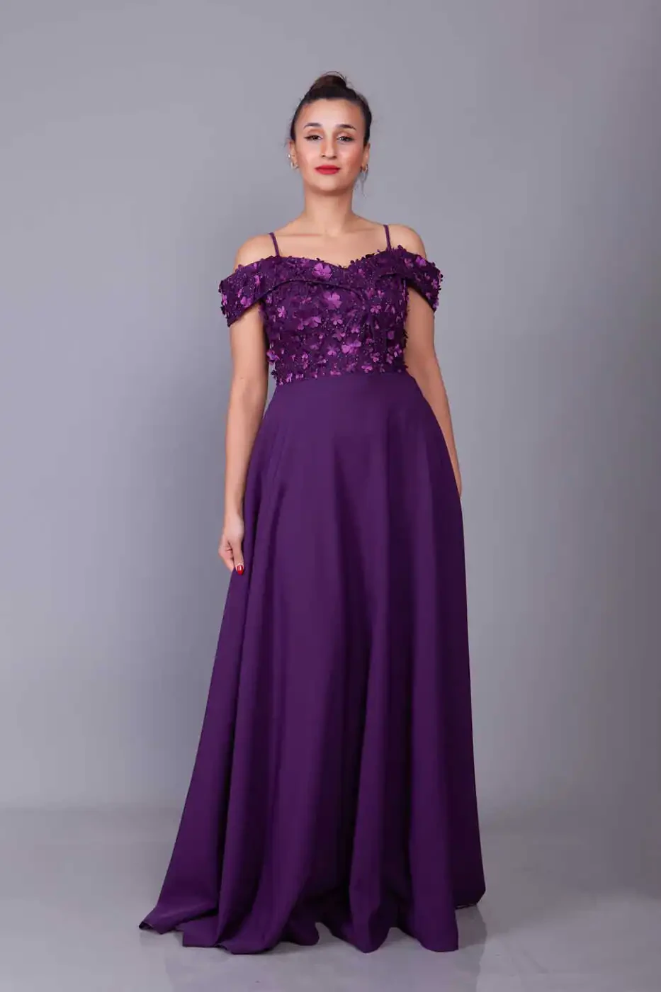 Подчеркните свою элегантность в особые дни с помощью сливового платья макси-клеш с открытыми плечами, бретелями и деталями из тюля с цветочным узором. Это эффектное вечернее платье позволит вам пережить незабываемые моменты, сочетая в себе стиль и комфорт. Благородный оттенок сливы, детали с открытыми плечами и романтичная отделка из тюля с цветочным узором привлекут всеобщее внимание. Юбка-клеш макси обеспечивает свободу движений и в то же время создает изысканный вид. Ткань атлас-креп изящно драпируется на вас, добавляя шик вашему образу. Это вечернее платье, которое можно с легкостью надеть на любое особое мероприятие, от званых вечеров до свадеб, от помолвок до выпускных, станет незаменимой вещью в вашем гардеробе. Подкладка на верхней части обеспечивает комфорт, а отсутствие подкладки на юбке обеспечивает легкость и удобство в использовании. Вы можете уверенно носить его с темными цветами, которые не просвечивают, и использовать подкладку для юбки по желанию со светлыми цветами. Благодаря потайной молнии сзади его легко надевать и снимать. Положение и размеры модели дают вам представление о том, как платье будет смотреться на вашем теле, и вы сможете добиться идеальной посадки, выбрав подходящий размер. Это вечернее платье особого дизайна является нашей собственной продукцией и изготовлено с особой тщательностью из материалов высочайшего качества. Откройте для себя это уникальное изделие, которое будет сопровождать вас в ваши особые моменты, и очаровывайте своим стилем.