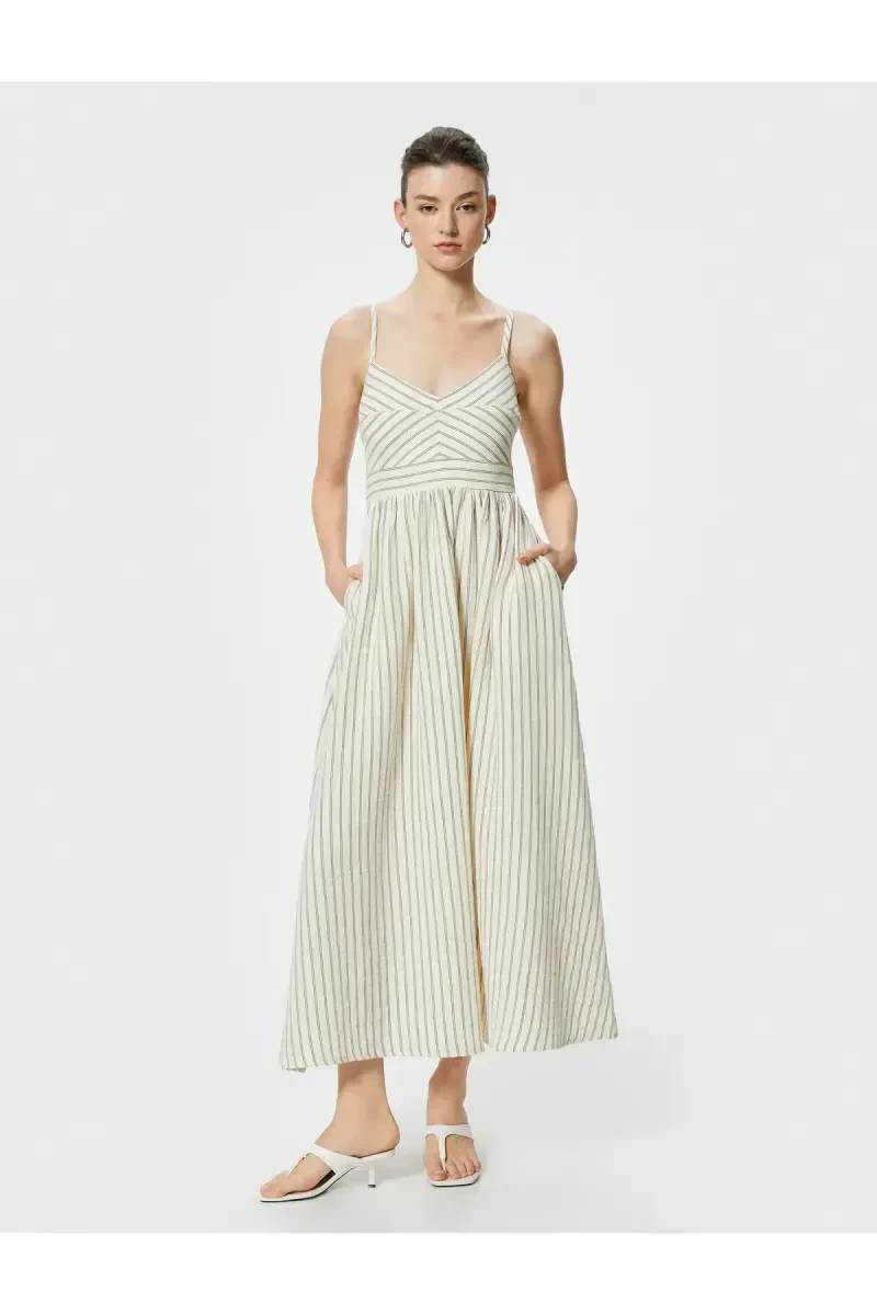 Платье-макси на бретелях, на подкладке, с карманами, со спинкой на резинке, из хлопковой ткани. Благодаря удобному крою и элегантному дизайну идеально подходит для повседневного использования.