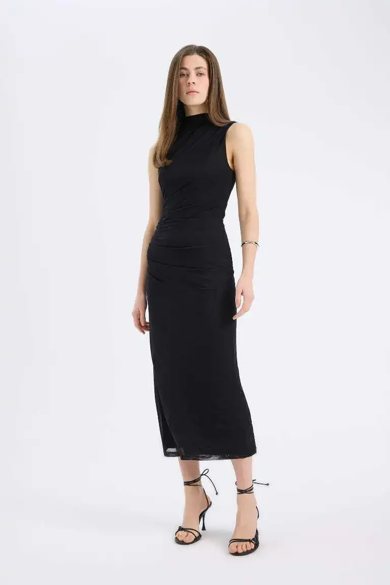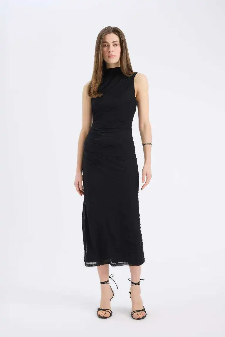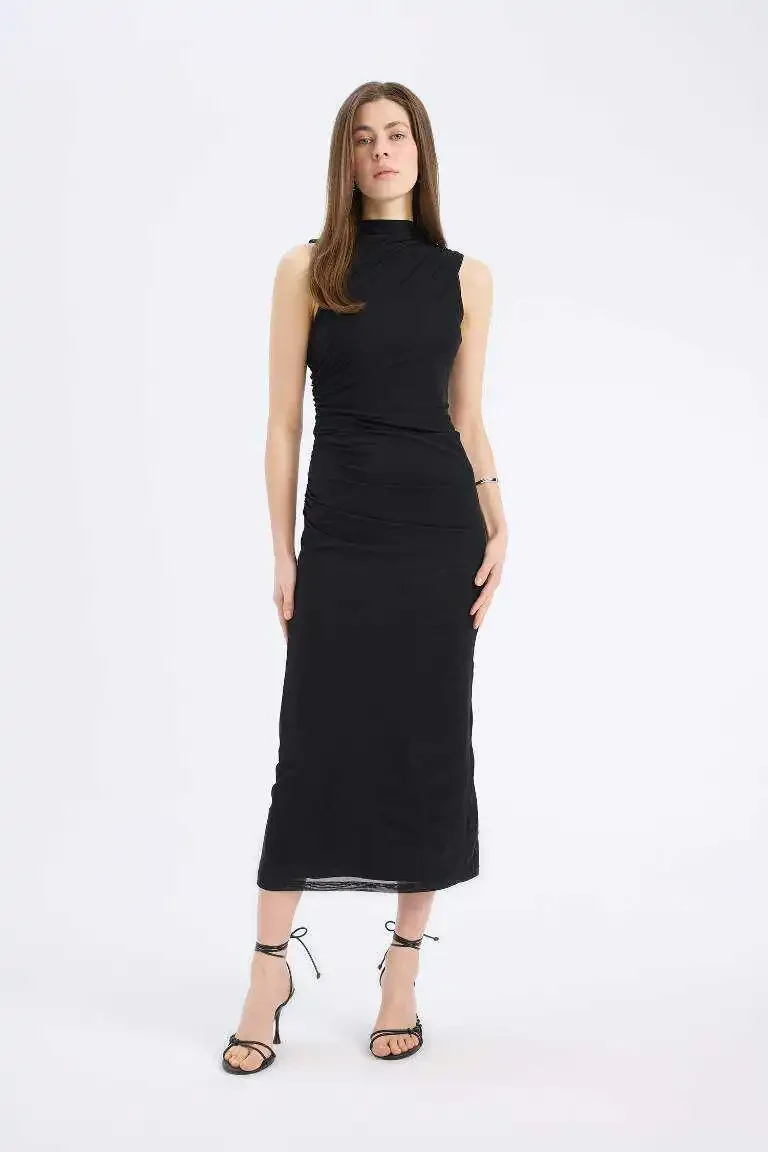Модель платья Bodycon Bodycon с круглым вырезом горловины, базовое однотонное, тюлевое, без рукавов, черное, придаст вам элегантность и шик на особых мероприятиях и в повседневной жизни. Благодаря современному дизайну, который облегает ваше тело, вы получите привлекательный внешний вид. Деталь с полукруглым вырезом добавляет вашему наряду как спортивный, так и утонченный вид. Бесшовный дизайн обеспечивает свободу движений, а тюлевая деталь подчеркивает вашу женственность. Черный цвет легко сочетается с любыми комбинациями, а простой крой позволяет аксессуарам сиять.