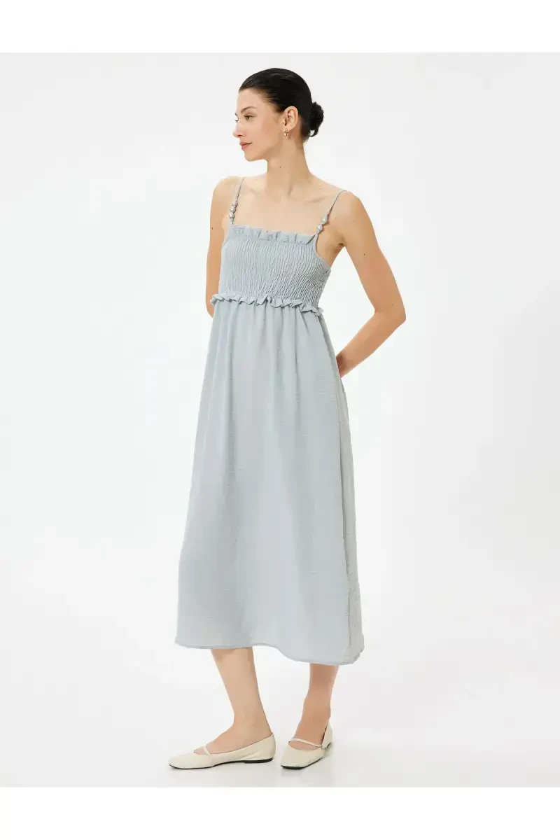 платье на тонких бретельках, платье миди, платье с оборками, платье с прошвой, платье с бусинами, летнее платье, женское платье, элегантное платье, повседневное платье, модное платье