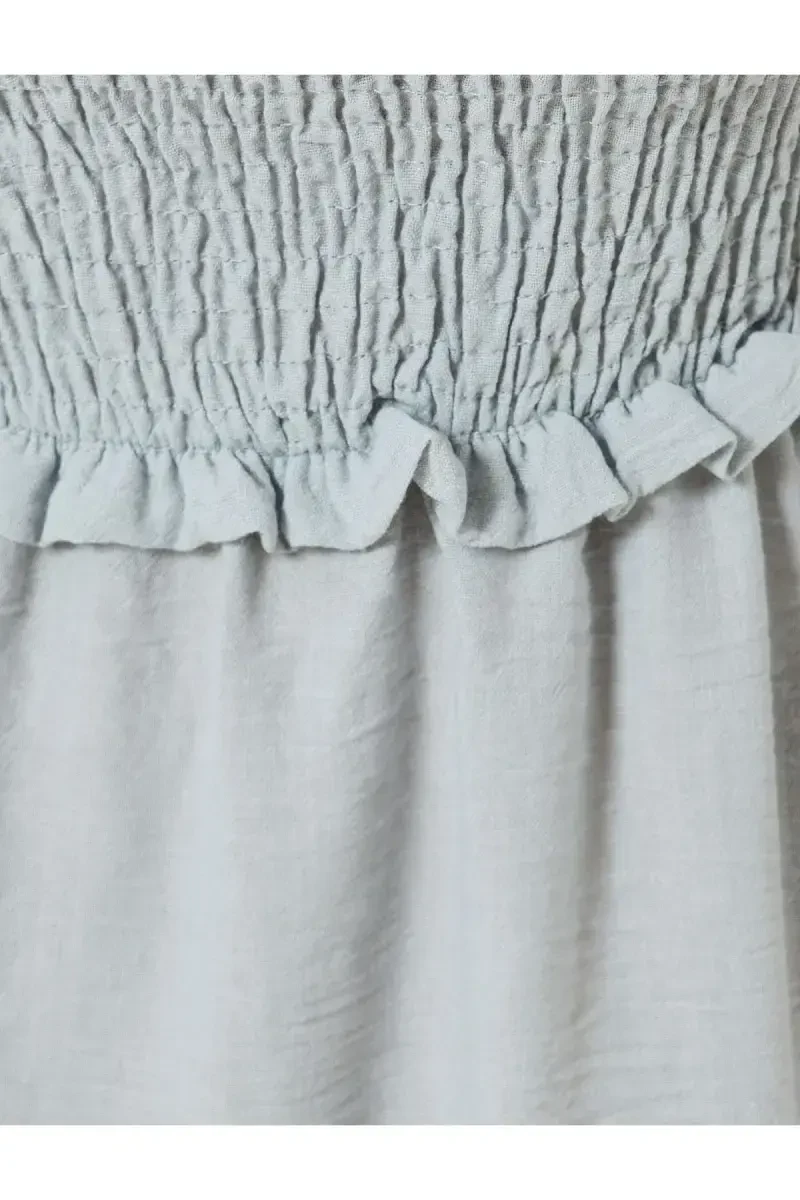 Платье миди с оборками и гипюром - Тонкие бретельки с бисерными деталями