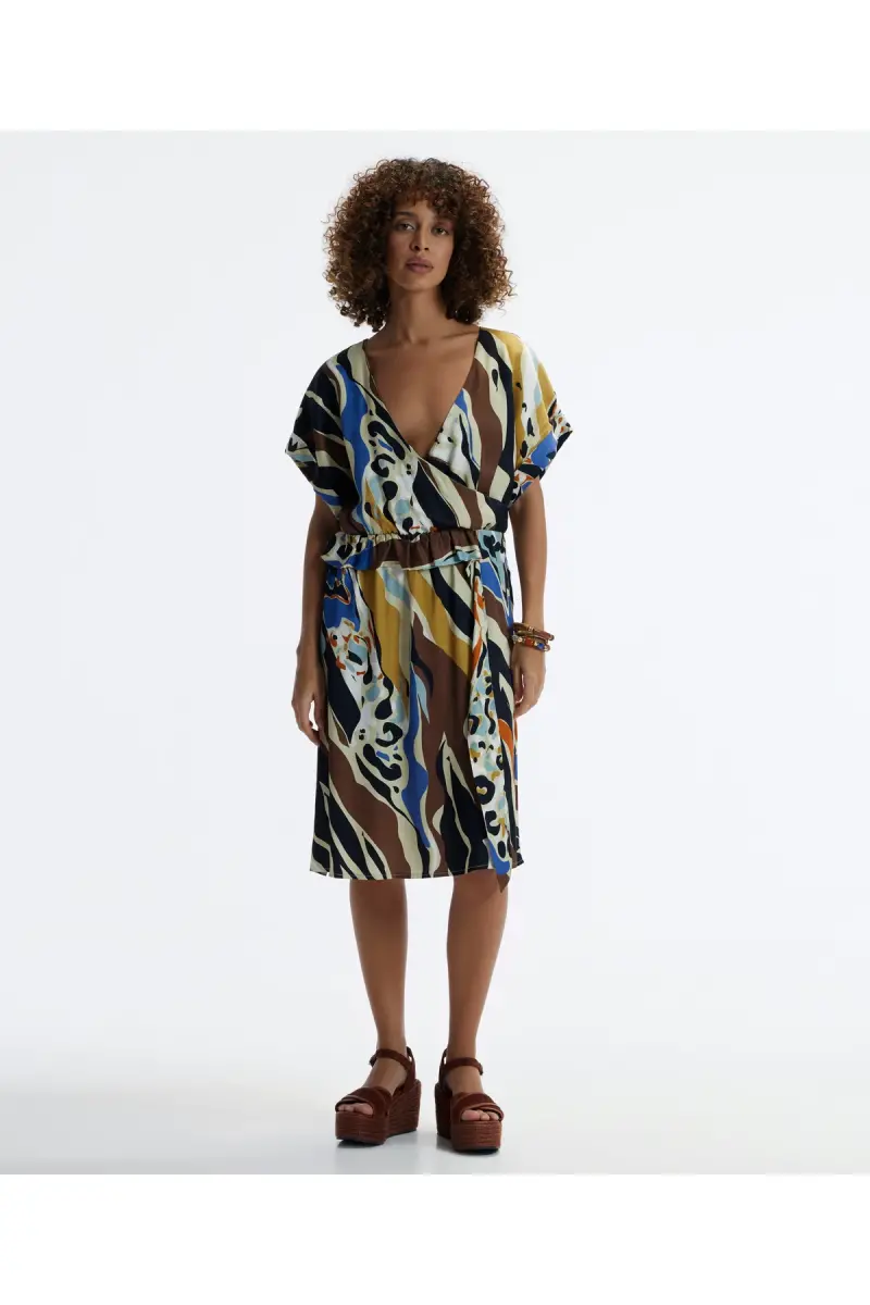 Платье с V-образным вырезом для изящного образа, короткими рукавами для комфорта и длиной миди для универсальности станет незаменимой вещью в вашем гардеробе. Идеально подходящее как для повседневной носки, так и для особых случаев, это платье сочетает в себе элегантность и комфорт благодаря мягкой ткани и удачному крою.