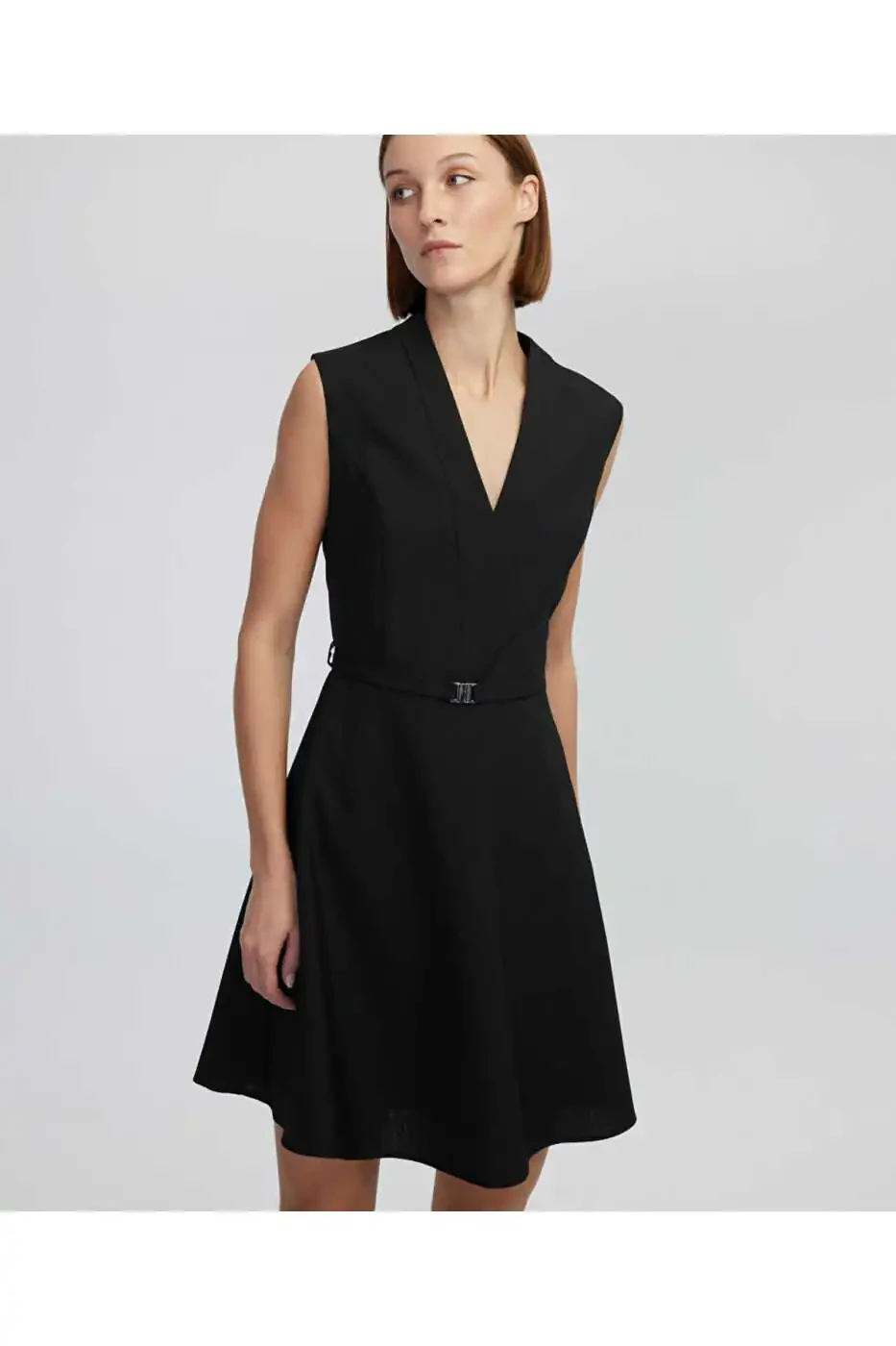Платье с V-образным вырезом, Платье с тонким поясом, Платье IPEKYOL, Элегантное платье, Удобное платье