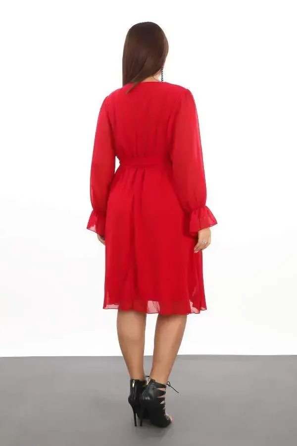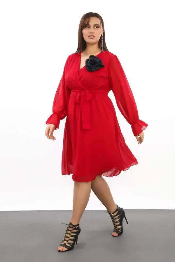 **Большое свободное и эластичное короткое красное шифоновое платье KL3086**