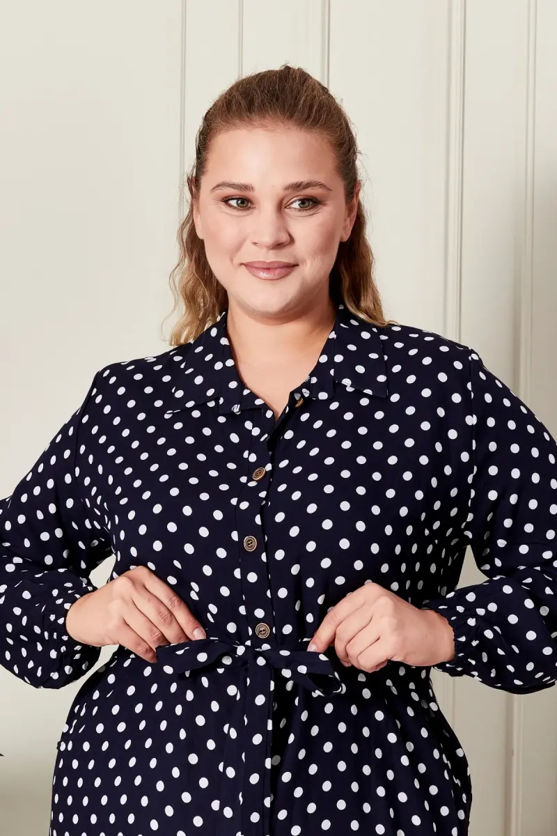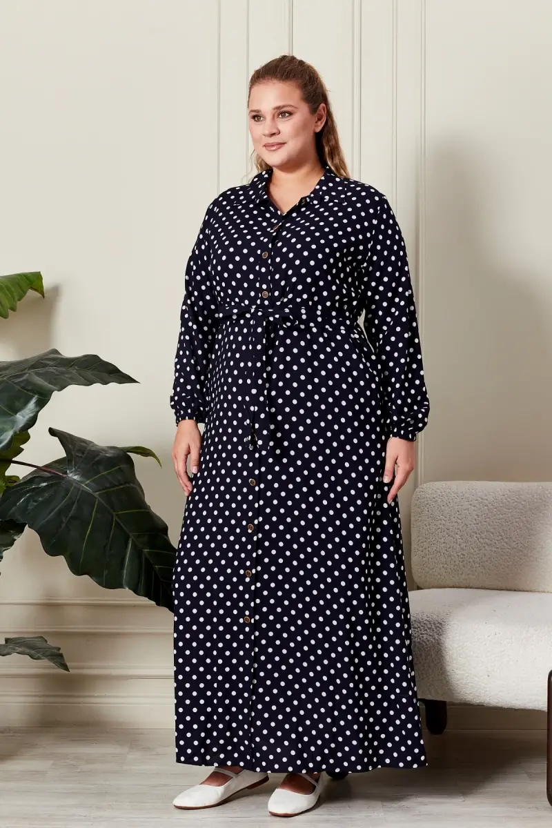 Если вы ищете платье, которое заставит вас чувствовать себя особенной, вы пришли по адресу! Женское платье в горошек больших размеров идеально подходит для любого размера благодаря своему элегантному дизайну и комфортной ткани. Будь то шикарный ужин, повседневная жизнь или особенный день, выглядите безупречно в этом платье.