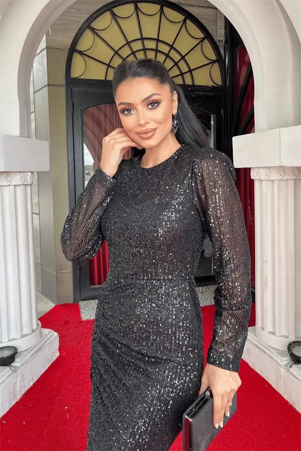 Платье-макси с пайетками и драпировкой отличается современным и изысканным видом. Все платье покрыто переливающимися на свету пайетками, что придает ему завораживающее сияние. Детали драпировки идеально подчеркивают линии вашей фигуры, а также придают платью движение и динамизм. Это платье-макси, сочетающее в себе благородство черного цвета и очарование пайеток, станет незаменимой вещью в вашем гардеробе.Крой платья разработан таким образом, чтобы вам было одновременно комфортно и стильно. Благодаря высококачественной ткани оно идеально сидит по фигуре и обеспечивает комфорт в течение всего дня. Внутренняя подкладка платья нежно касается вашей кожи и не вызывает дискомфорта.Это платье-макси легко сочетается с различными аксессуарами и обувью. Вы можете создать незабываемый образ, дополнив его элегантными туфлями на каблуке и изящной сумочкой. Кроме того, вы можете подчеркнуть сияние платья, сочетая его с минималистичными украшениями. Платье-макси с пайетками и драпировкой — это не просто платье, это еще и выражение стиля. Этот эксклюзивный дизайн придаст вам уверенности и элегантности, позволяя вам блистать в любой обстановке. Собираетесь ли вы на светское мероприятие или на элегантный ужин, в этом платье-макси вы всегда будете выглядеть наилучшим образом.Этот эксклюзивный дизайн, который обязательно должен быть в вашем гардеробе, будет сопровождать вас долгие годы и всегда заставит вас чувствовать себя особенной. Платье-макси с пайетками и драпировкой — идеальный выбор для женщин, которые ищут элегантность, изысканность и комфорт в одном лице, и станет частью ваших незабываемых воспоминаний.