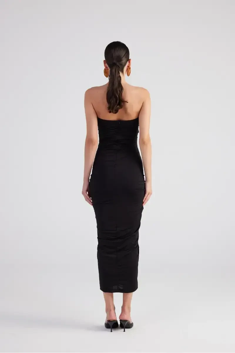 Бюстье с драпировкой и разрезом, черное платье без бретелек Hailey | Платье Holly Lolly