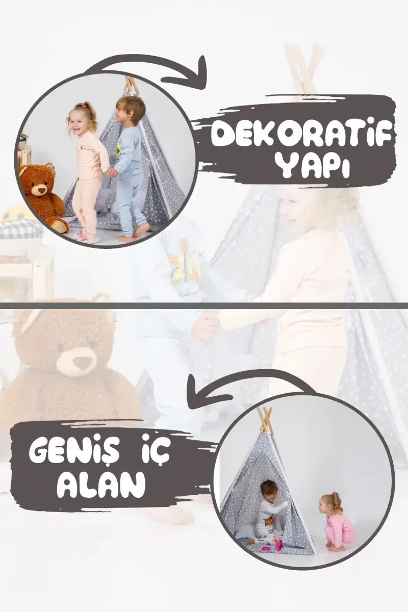 The Playmate Indian Cotton Children's Play Tent is designed to make children's playtime more enjoyable and educational. Thanks to its gray color, this tent, which adapts to all kinds of children's room decorations, offers a simple and stylish look. The cotton fabric does not harm children's sensitive skin and provides them with a healthy play area. Thanks to the easy installation of the tent, you can quickly set it up whenever you want and start the fun of the game. At the same time, thanks to the portable feature of the tent, it can be easily used indoors as well as outdoors such as gardens and parks. This feature allows your children to move their playgrounds wherever they want. The Indian tent design stimulates children's imaginations and inspires them for adventurous games. They can read books, play with their toys or come together with their friends and collect unforgettable memories. The Playmate Indian Cotton Children's Play Tent is not only a playground, but also a tool that helps children socialize, develop their problem-solving skills and increase their self-confidence. This tent contributes to your children's development while providing them with a fun and safe play environment. Produced from long-lasting and durable materials, this tent will continue to be your children's playmate for many years. Thanks to its easy-to-clean feature, it provides a hygienic environment and reassures parents. The Playmate Indian Cotton Children's Play Tent is a candidate to be your children's favorite toy!