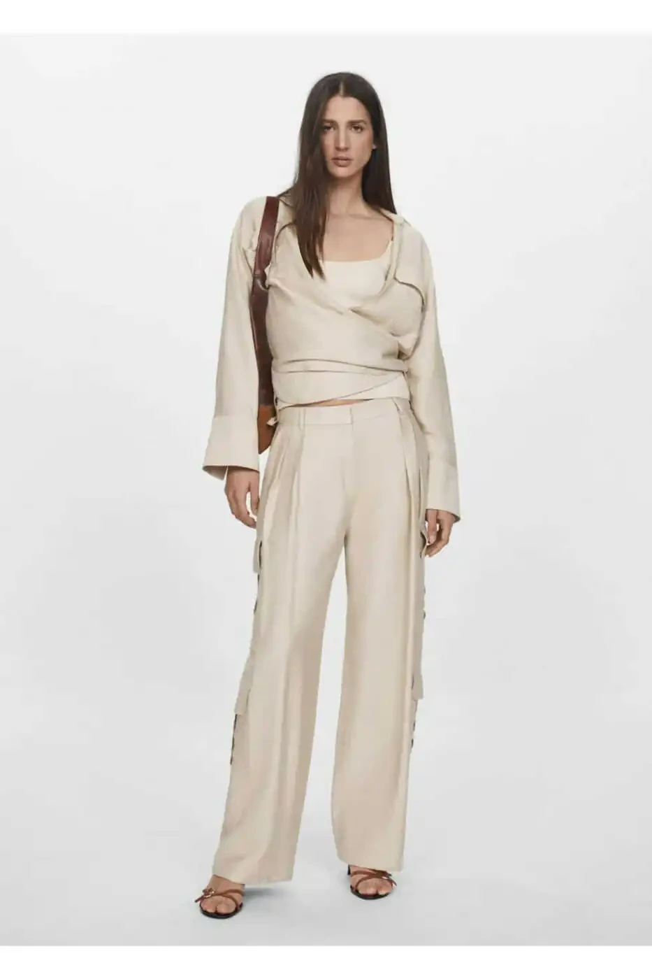 **Pleated Cargo Pants****Product Features:*** **Fabric Type:** Flowy and Woven* **Model:** Long* **Style:** Cargo* **Waist Type:** Regular Waist* **Belt Loops:** Yes* **Pockets:** Two side pockets, four flap pockets in front, two back welt pockets* **Closure:** Hidden button, buckle, and zipper* **Details:** Pleated and Total Look* **Material:** 85% Viscose, 15% Polyamide* **Inside Leg Length:** 76.0 cm* **Side Seam Length:** 101.5 cm**Care Instructions:*** MACHINE WASH IN SHORT SPIN CYCLE MAX 30°C* DO NOT BLEACH* IRON AT MAX 110°C* DO NOT DRY CLEAN* DO NOT TUMBLE DRY**Important Notes:*** This product will be shipped by Trendyol.* Less than 5 pieces are available for sale at the campaign price.* A maximum of 10 units of a product can be ordered. Orders over 10 units may be canceled by Trendyol.* You have the right to return the product within 15 days free of charge.**Shop with Trendyol's Guarantee!**