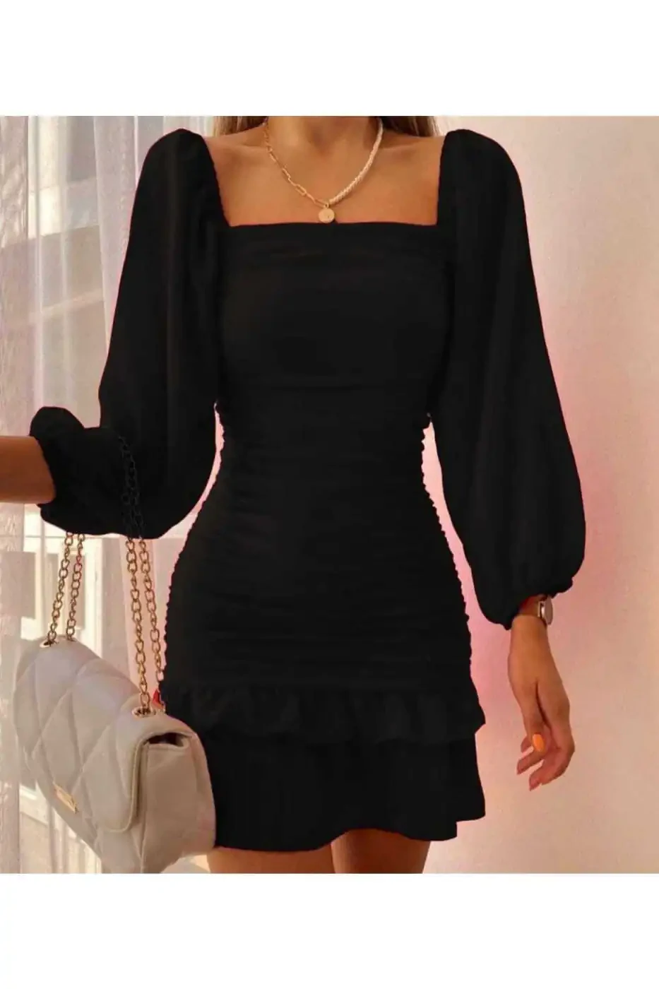 Pleated Skirt Long Sleeve Stretch Crepe Fabric Black Evening Dress, designed to enchant with your elegance on your special occasions. The body-hugging cut of the stretch crepe fabric and the pleated skirt detail offer both a stylish and modern look. The long-sleeved design makes this evening dress a great choice for cooler weather, and you can wear it to a variety of events, from special invitations to cocktails. Combined with the nobility of black, this design will attract attention in any setting. You can combine it with high heels and elegant jewelry to complete your look. The fabric quality and workmanship of the evening dress will ensure that it becomes an indispensable part of your wardrobe for many years. It is an ideal choice to feel special and leave an unforgettable impression. All eyes will be on you at invitations, special days, and celebrations. This dress, with its modern cut and classic black color, is a candidate to be one of the most valuable pieces of your wardrobe. Thanks to its flexible fabric, you can move comfortably throughout the day and experience comfort without sacrificing your elegance. The pleated skirt detail of the dress adds a lively and dynamic look, while the long-sleeved design emphasizes elegance. Combined with the timeless elegance of black, this design offers a suitable option for all ages and body types. You can choose this evening dress to crown your special moments and create an unforgettable style. The quality of its fabric and the care in the stitching details ensure that the evening dress is long-lasting, while always keeping you stylish and well-groomed. Pleated Skirt Long Sleeve Stretch Crepe Fabric Black Evening Dress is not just a piece of clothing, but also a style statement.Product DescriptionPleated Skirt Long Sleeve Stretch Crepe Fabric Black Evening Dress is a unique design that will allow you to stand out with your elegance in your special moments. The flawless body-hugging cut of the flexible crepe fabric offers both a stylish and comfortable experience. The pleated skirt detail adds movement and dynamism to the dress, giving it a modern look. The long-sleeved design allows you to easily choose this dress without sacrificing your elegance even in cool weather, and you can wear it to many different events from special invitations to cocktails, weddings to engagements. The nobility and elegance of black will attract attention in any environment and allow you to leave an unforgettable impression. The fabric quality and workmanship of the dress guarantees that it will be an indispensable part of your wardrobe for many years. You can combine it with elegant high-heeled shoes, sparkling jewelry and a stylish clutch to complete your look. Pleated Skirt Long Sleeve Stretch Crepe Fabric Black Evening Dress is not just a piece of clothing, but also an investment you will make in yourself. This special design will give you confidence, reflect your elegance at every step and help you create unforgettable memories. The pleated skirt detail of the dress creates a moving and dynamic silhouette, while the long-sleeved design combines elegance and grace. Thanks to its flexible fabric, you can move comfortably throughout the day and show off your elegance without sacrificing your comfort. With its cut that adapts to every body type and the timeless color of black, this dress is a candidate to be one of the most valuable pieces of your wardrobe. You can choose the Pleated Skirt Long Sleeve Stretch Crepe Fabric Black Evening Dress to crown your special moments, create an unforgettable style and always feel special. With its fabric quality, meticulous stitching details and design, this dress will always make you look stylish, well-groomed and confident. Remember, elegance is hidden in the details and this dress offers you a perfect look with all its details.Product Features* Stretch crepe fabric* Body-hugging cut* Pleated skirt detail* Long sleeve design* Black color* Stylish and modern look* Can be worn at various events* High fabric quality and workmanship* Suitable for all ages* Suitable for all body types* Easy movement* Timeless design* A must-have for your wardrobe* Creates an unforgettable style* Gives confidenceAdditional InformationFollow the washing instructions on the label to ensure the product lasts longer. Dry cleaning is recommended. Accessories and shoes are not included in the product, they are used for combination purposes. The size on the model is S/36. There may be tonal differences in product photos. The fabric of the product may be sensitive, it is recommended to use it carefully. Suitable for use on special occasions and invitations.