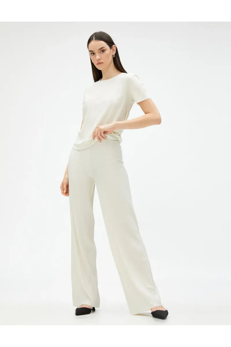 The Pleated T-Shirt Short Sleeve Crew Neck-Ecru is an ideal choice for those who want to catch the trends in t-shirt fashion. This t-shirt, carefully designed by GÜÇKAR TEKSTİL AYAK.GIDA TUR.SAN.VE TİC., offers both elegance and comfort. The short sleeve and crew neck design provide a look suitable for both daily use and special events. Pleated details add movement and difference to the t-shirt, while the ecru color easily matches with all kinds of combinations. You can create a unique style by combining it with jeans, shorts or skirts. The model's measurements (Height: 175 cm, Hips: 91 cm, Top: 59 cm, Waist: S, Chest: 84 cm, Jean: 27/32) will give you an idea of how the product will look on you. This t-shirt will be an indispensable part of the wardrobe for women who care about both comfort and elegance. Thanks to Trendyol's easy return option, you can return the product free of charge within 15 days if you do not like it. Don't miss this special design t-shirt that will reflect your style!