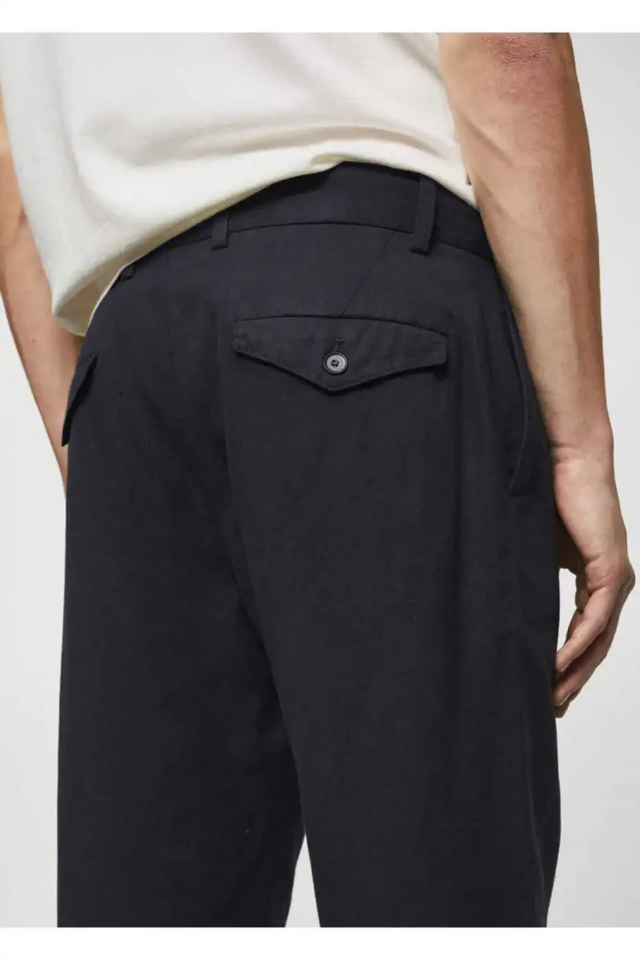 These pleated pants with a tapered leg cut are the perfect choice for your elegant and stylish wardrobe. Made from a blend of 50% lyonel, 27% linen, and 23% cotton, these pants are both comfortable and durable.