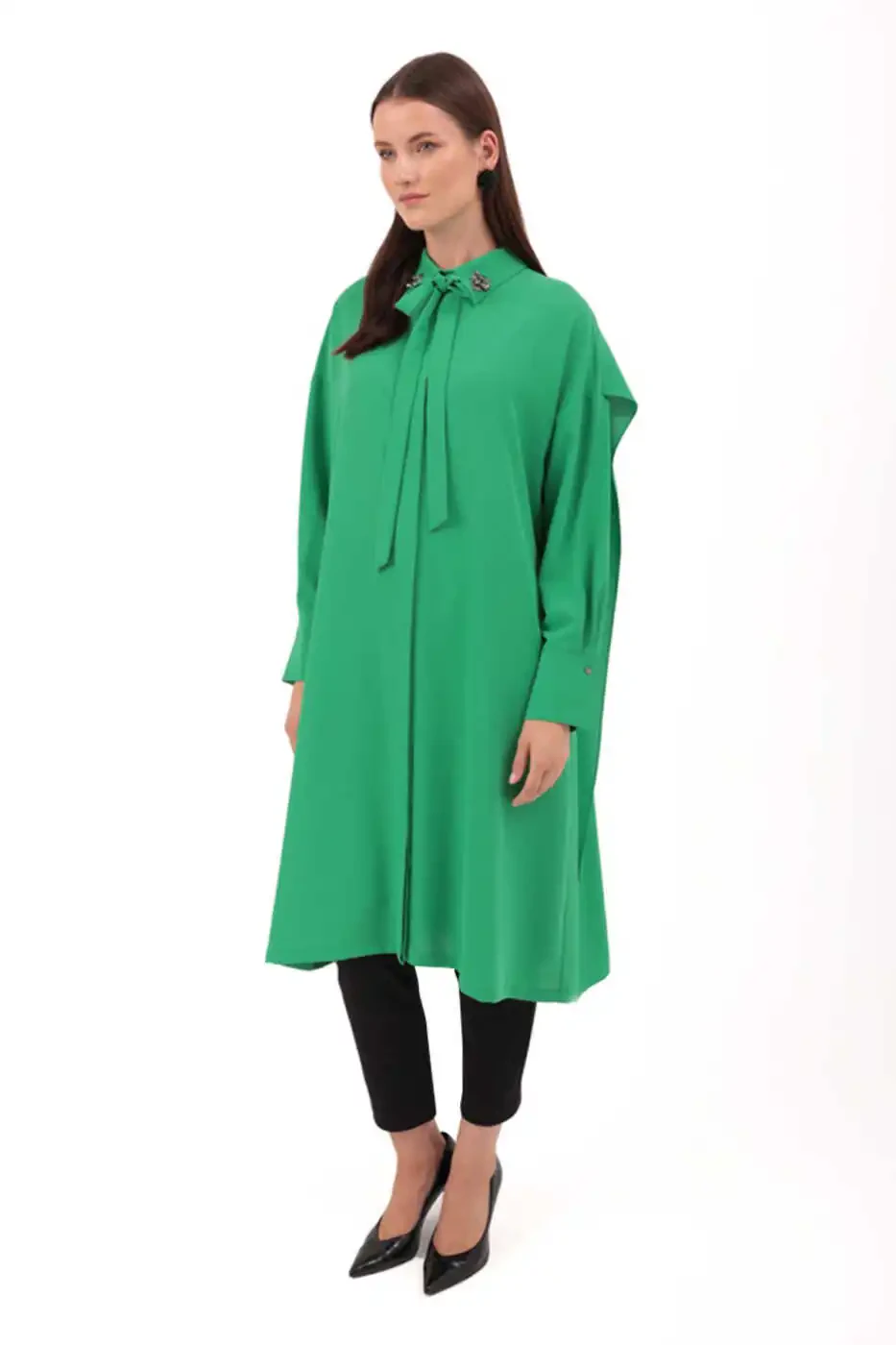 Комбинирующая в себе комфорт и элегантность туника с капюшоном и отделкой на спинке, станет уникальным выбором для вашего повседневного стиля. Богато украшенный кружевом и вышивкой воротник придаёт ей очарование, а дизайн спинки с капюшоном – индивидуальный стиль. Легкая и дышащая ткань обеспечивает комфорт на весь день. Многофункциональный дизайн, сочетающийся с различными комбинациями, позволяет использовать её как в повседневной, так и в деловой одежде. Идеальный выбор для тех, кто хочет сочетать элегантность и комфорт. Изготовленная из высококачественных материалов, эта туника обеспечит долгий срок службы и презентабельный вид. Добавьте эту уникальную тунику в свой гардероб, чтобы завершить свой стиль.