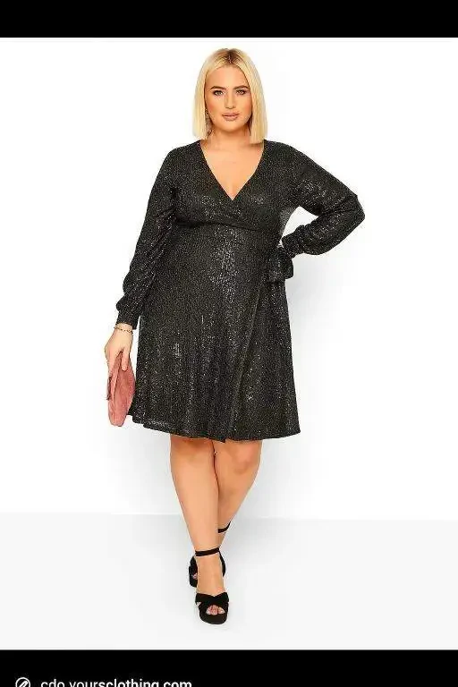 Shine on your special occasions with the eye-catching and elegant Plus Size Crossover Neck Sequin Evening Dress Black ND4014! This magnificent dress offers both elegance and comfort, providing a perfect fit for every body type. Thanks to its flexible sequin fabric, it does not restrict your freedom of movement, while the crossover neck detail elegantly emphasizes your décolleté. The 110 cm dress length is an ideal length, offering both a modern and classic look. This evening dress, bearing the nobility of black, is a candidate to make you the most stylish woman in any environment, from evening invitations to special celebrations. The lining on the inside provides a compatible touch with your skin, while the sparkle of the sequins will attract all attention. This dress, which perfectly wraps the body lines of plus-size women, will increase your self-confidence and make you the star of the night. This evening dress, which will be an indispensable part of your wardrobe, will accompany you for many years with its quality fabric and careful workmanship. You can combine it with high heels and elegant jewelry to complete your elegance. Remember, every moment will be special with the Plus Size Crossover Neck Sequin Evening Dress Black ND4014.