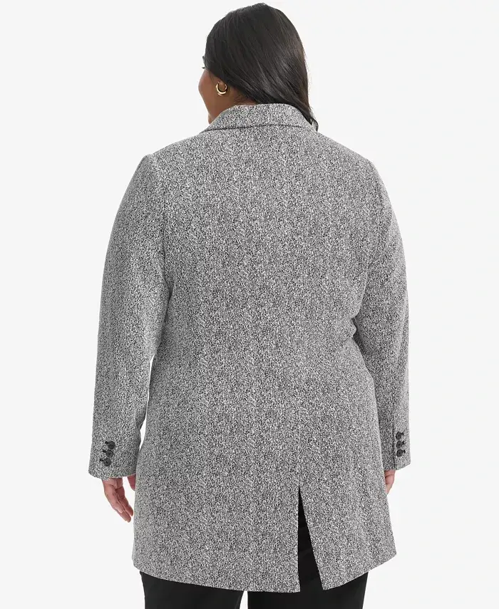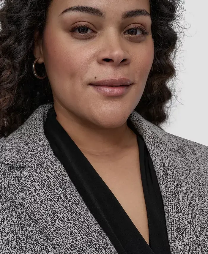 Designed to take your office elegance to the next level, the Plus Size Double D Topper Blazer will be an indispensable part of your wardrobe with DKNY's flawless craftsmanship and modern cut. This long blazer will support your professional look with its sophisticated stance and comfortable use, and will offer comfort all day long. Whether at a business meeting, a special occasion, or in daily use, this blazer, which will complete your elegance, will make you stand out in any environment.One of the most striking features of the blazer is its notched collar, which offers a stylish and modern look. The single button closure on the front adds an elegant touch to the blazer and allows you to put it on and take it off easily. The slit detail on the back does not restrict your freedom of movement and helps the blazer fit better on you. Shoulder pads accentuate your shoulder line, allowing you to display a more powerful and confident stance.The Plus Size Double D Topper Blazer also stands out with its functionality. The front welt pockets allow you to safely carry your small items while adding a stylish detail to the blazer. The button details on the cuffs enrich the design of the blazer and add a sophisticated touch to your style.Made of high-quality materials, this blazer offers long-lasting use. The polyester, cotton and spandex blend fabric offers both durability and comfort. The inner lining is made of polyester and provides a soft touch to your skin.Feel not only stylish, but also confident and strong with the DKNY Plus Size Double D Topper Blazer. This blazer is designed to fit every body perfectly and accentuates your curves in the best way. Redefine your office style and make a difference in every environment. Add this unique blazer to your wardrobe now and enjoy the elegance!