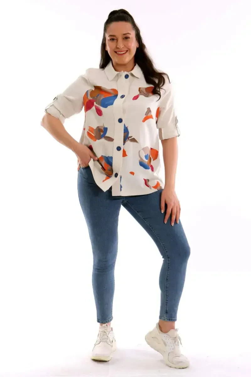 The Plus Size Front Leaf Print Saks Jacket helps you emphasize your masculine attitude with its modern cut, button detail, and texture. The jacket model's arm epaulettes and button details create a striking appearance.